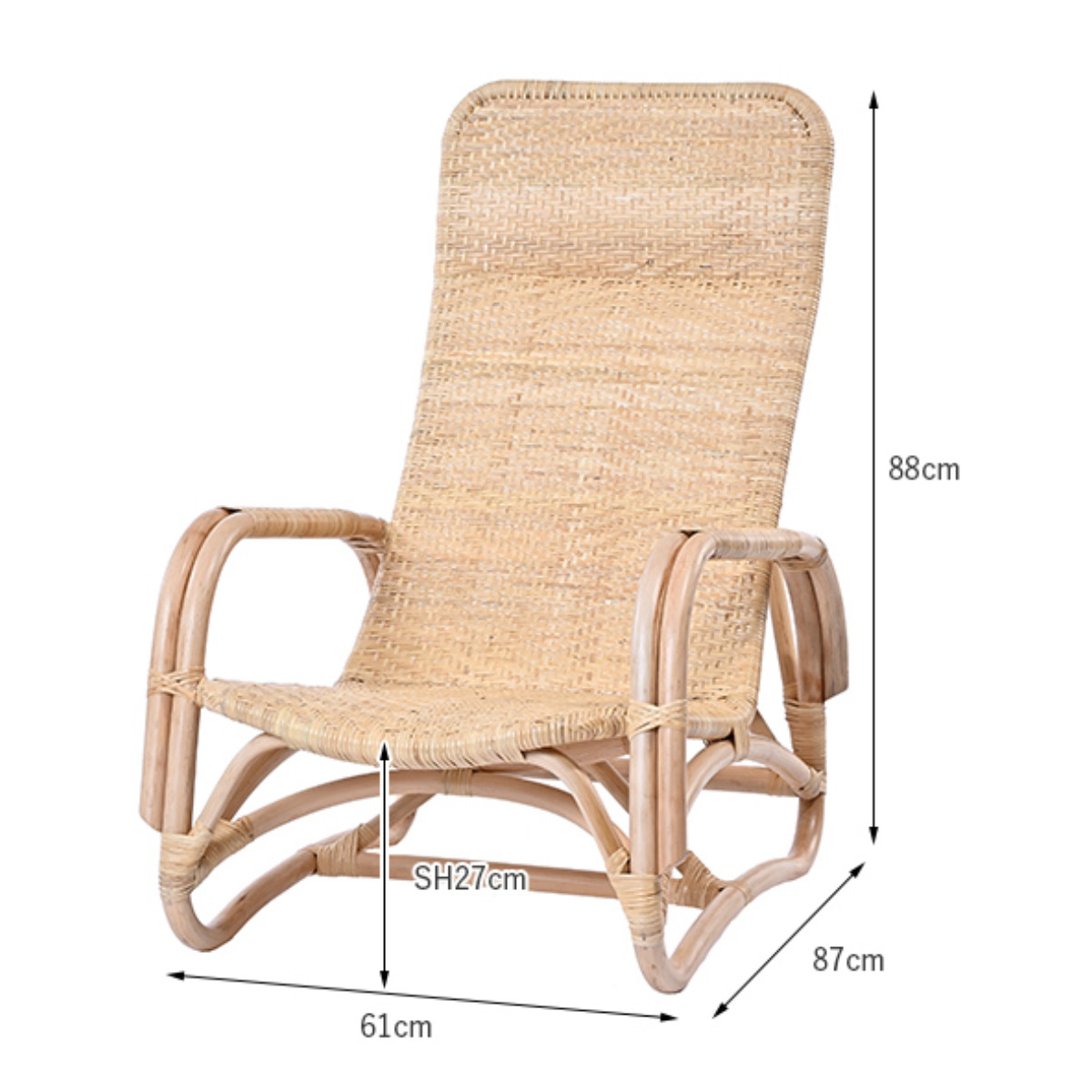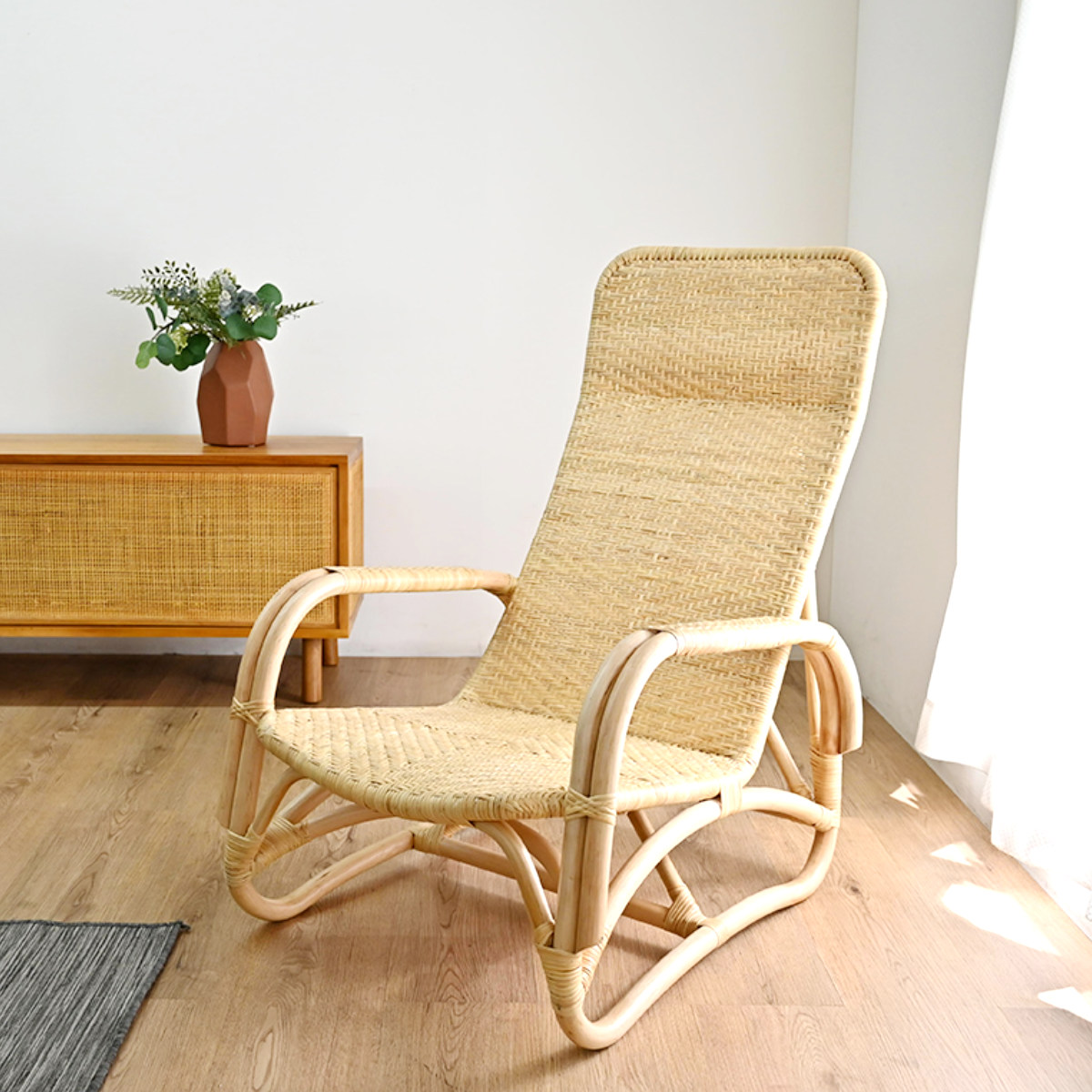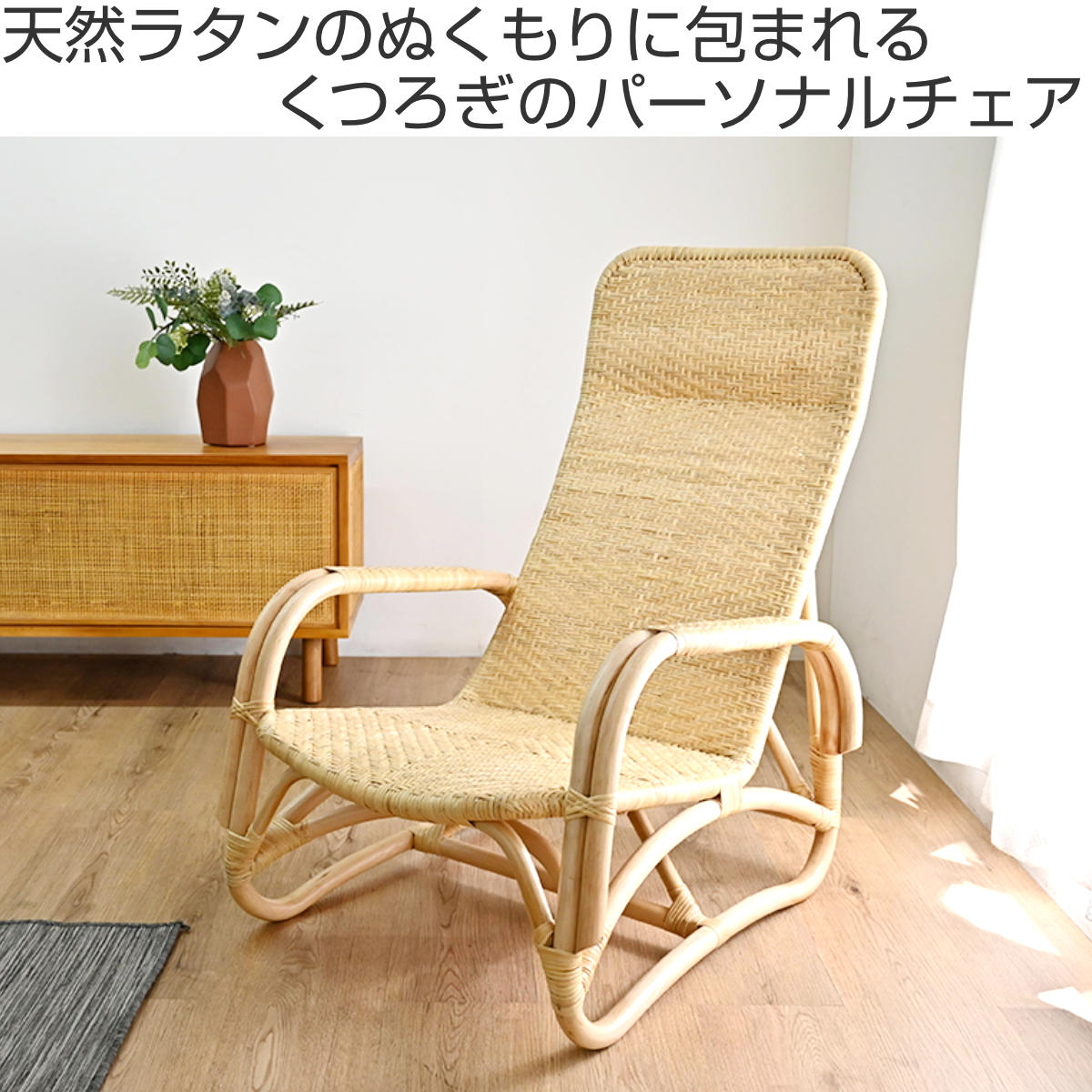 天然素材ラタンを使用した、軽やかで温もりのあるパーソナルチェアです。職人の手仕事で丁寧に編み上げられた座面と、身体をゆったり預けられるハイバック設計で、リラックスタイムをもっと心地よく快適に過ごせます。リビング、縁側、寝室など様々な場所で活躍します。