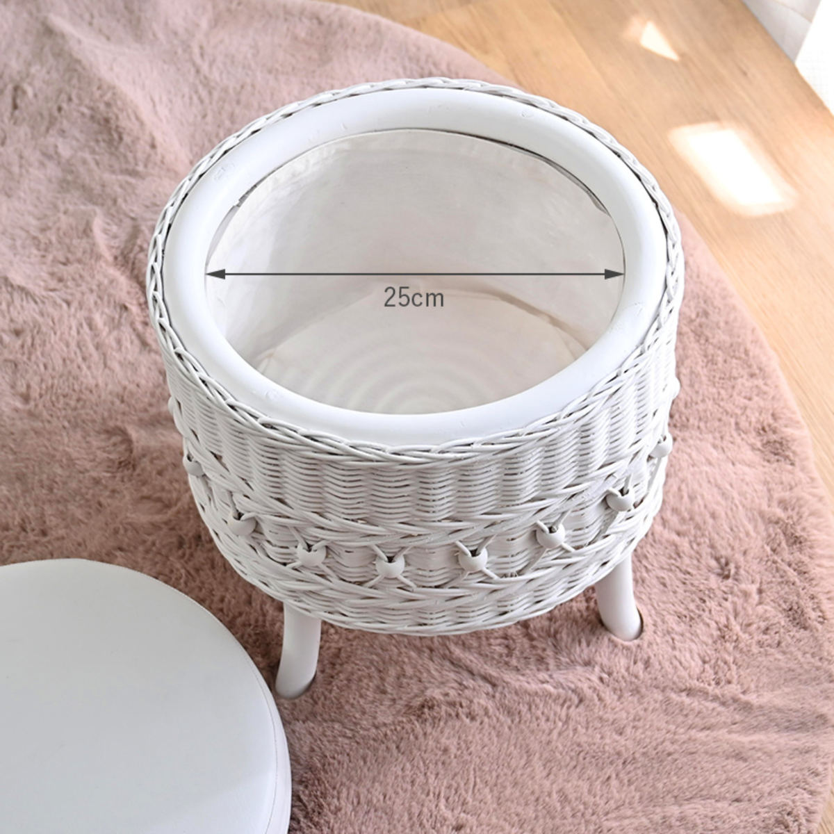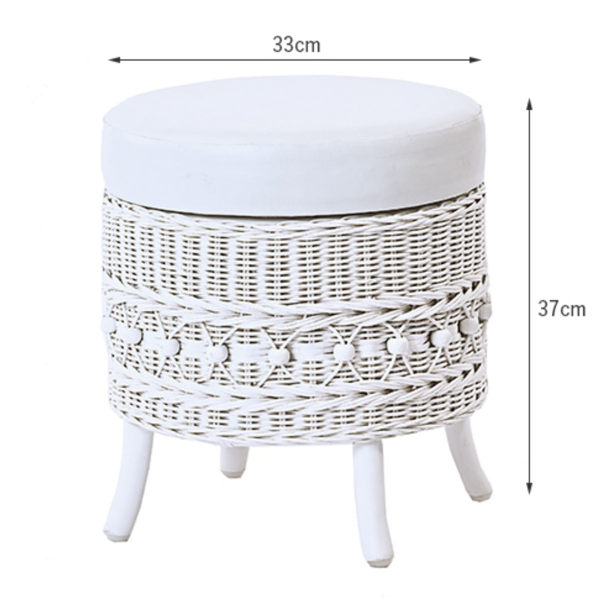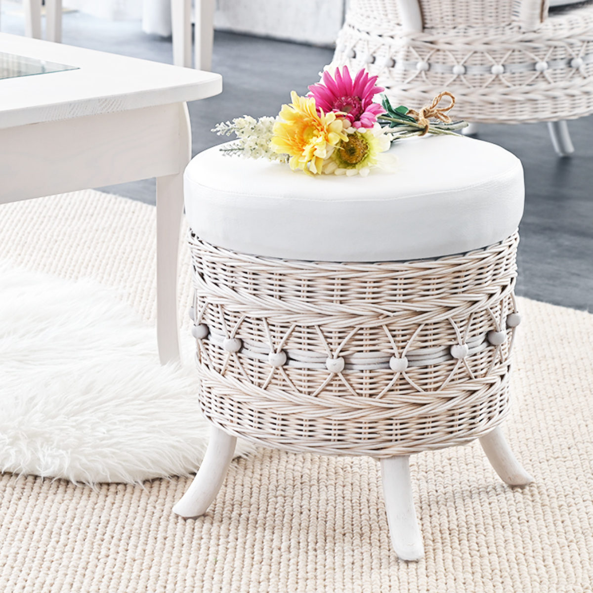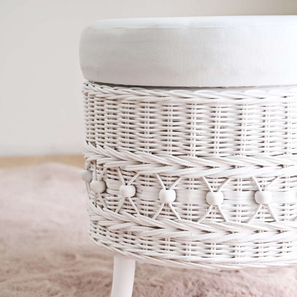 ラタン 収納付きスツール 籐製 腰掛け椅子 チェア 脚付き fiore ( 椅子 ラタンチェア スツール 円形 丸椅子 背もたれなし 完成品 収納 クッション 姫系 白家具 ガーリー ラタン家具 アジアン家具 白 ホワイト シャビーシック )