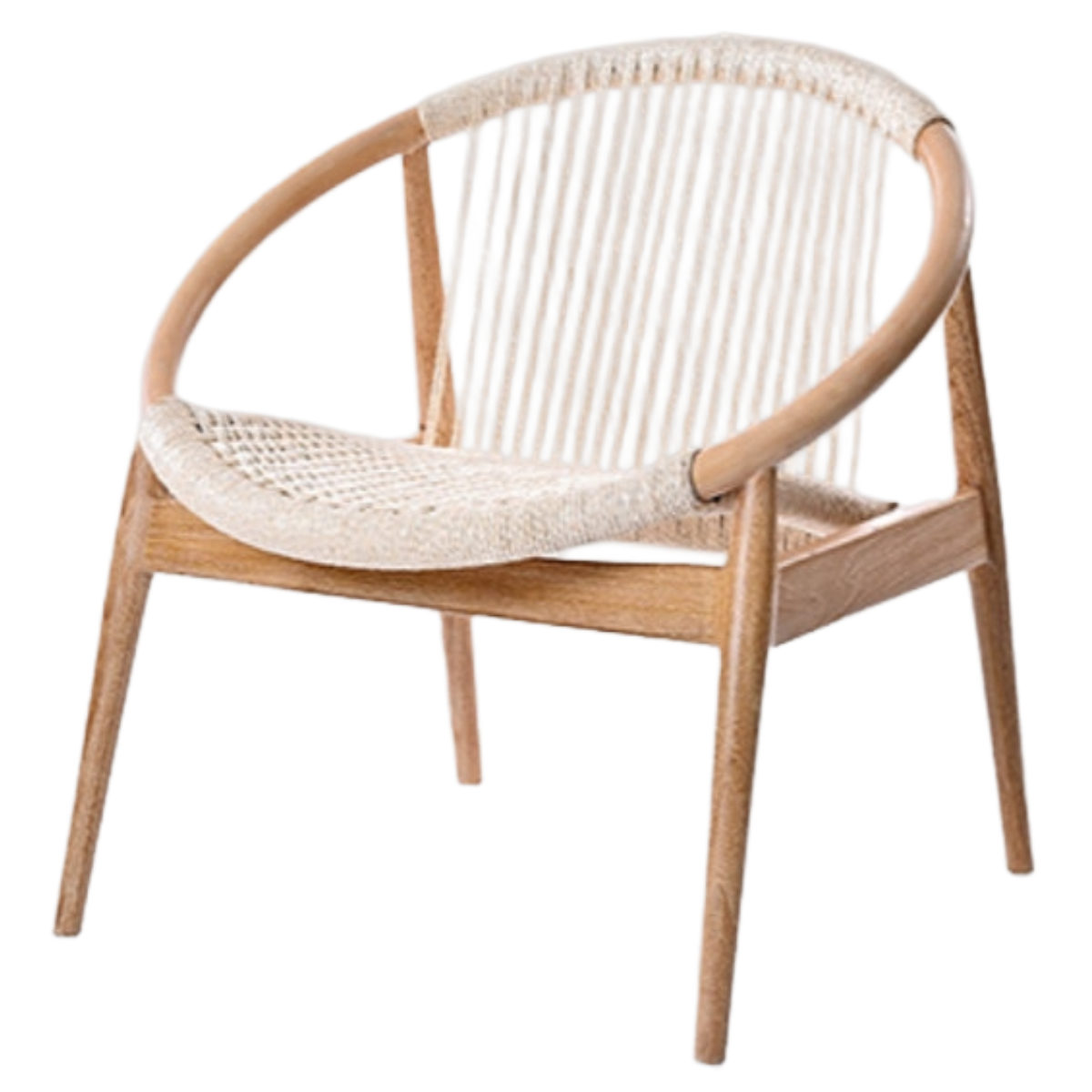 ラタン・ペーパーコード・チーク材、3つの天然素材を組み合わせた、ナチュラルで上質なラウンジチェアです。背もたれと座面が一体となった設計で、身体をやさしく支え、長時間座っても疲れにくい座り心地です。読書やコーヒータイムなど、リラックスした時間をより快適にしてくれます。