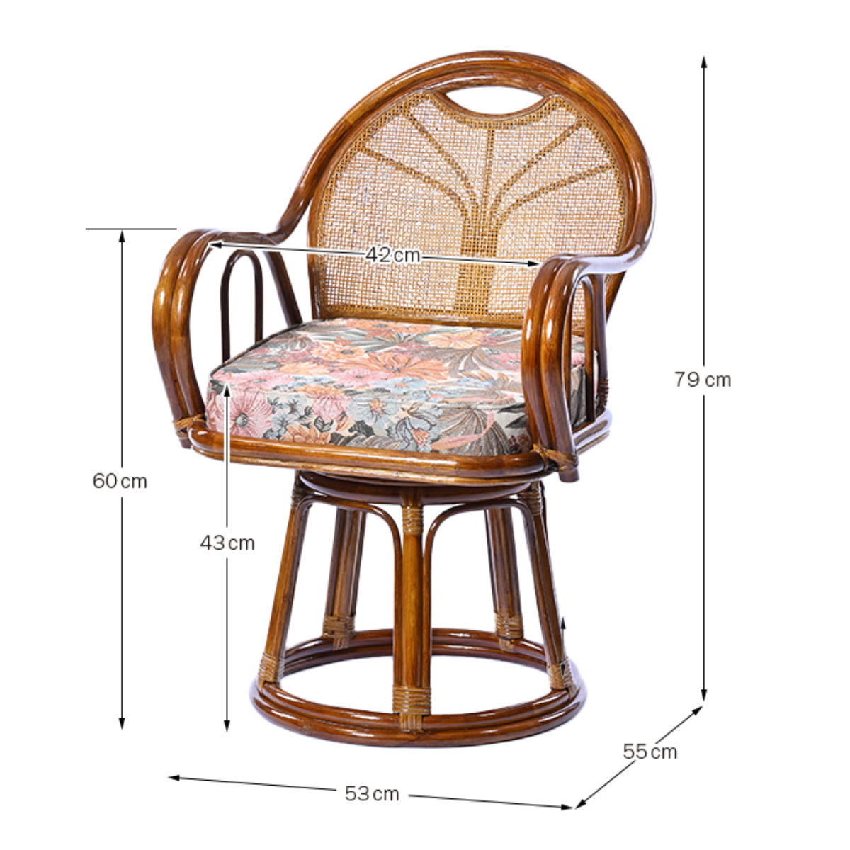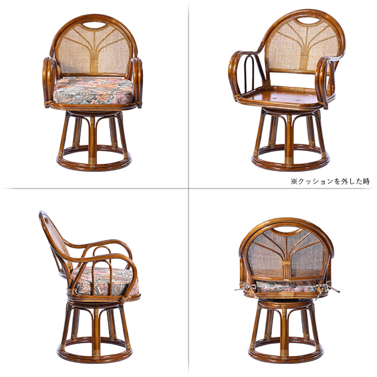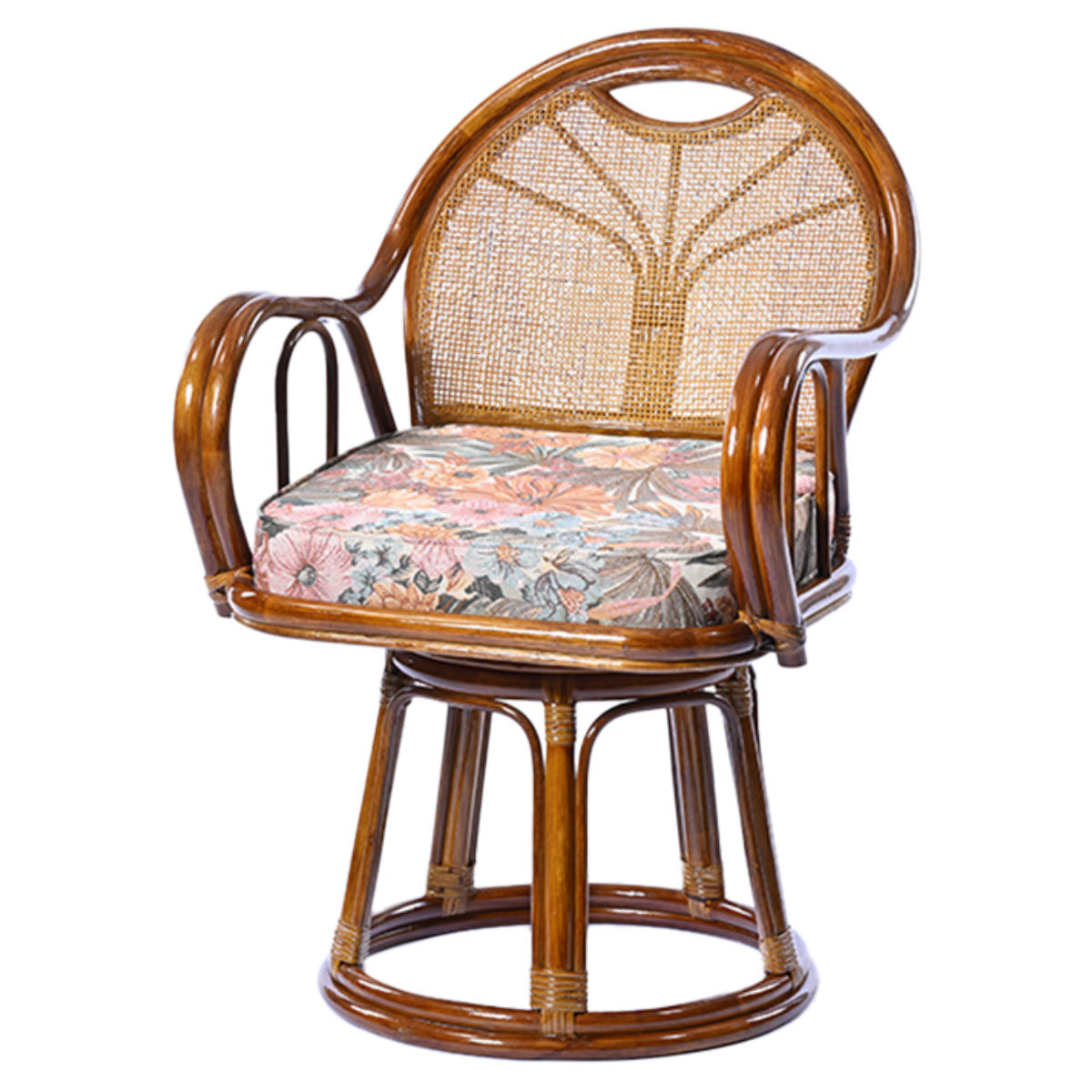 ラタン回転座椅子 ハイタイプ 座面高43cm 花柄 クッション付き 360度回転 ( 回転チェア 高座椅子 和モダン 肘掛け 籐 ラタン 座椅子 完成品 背もたれ 回転椅子 回転座椅子 回転式 回る 360度 通気性 持ち運び 軽量 籐椅子 )