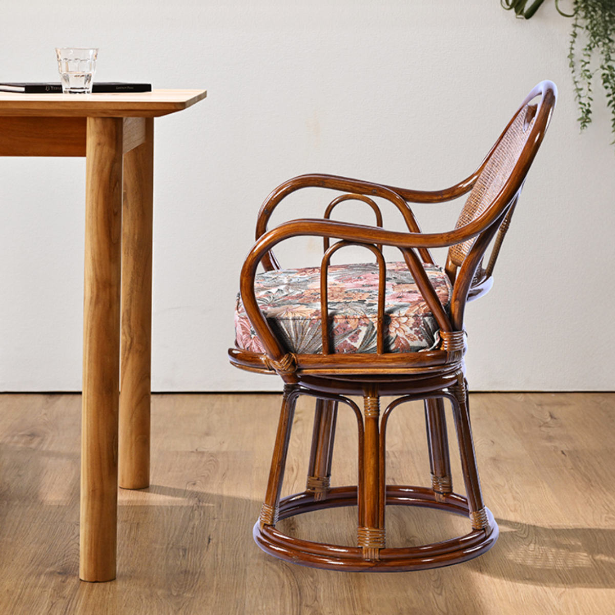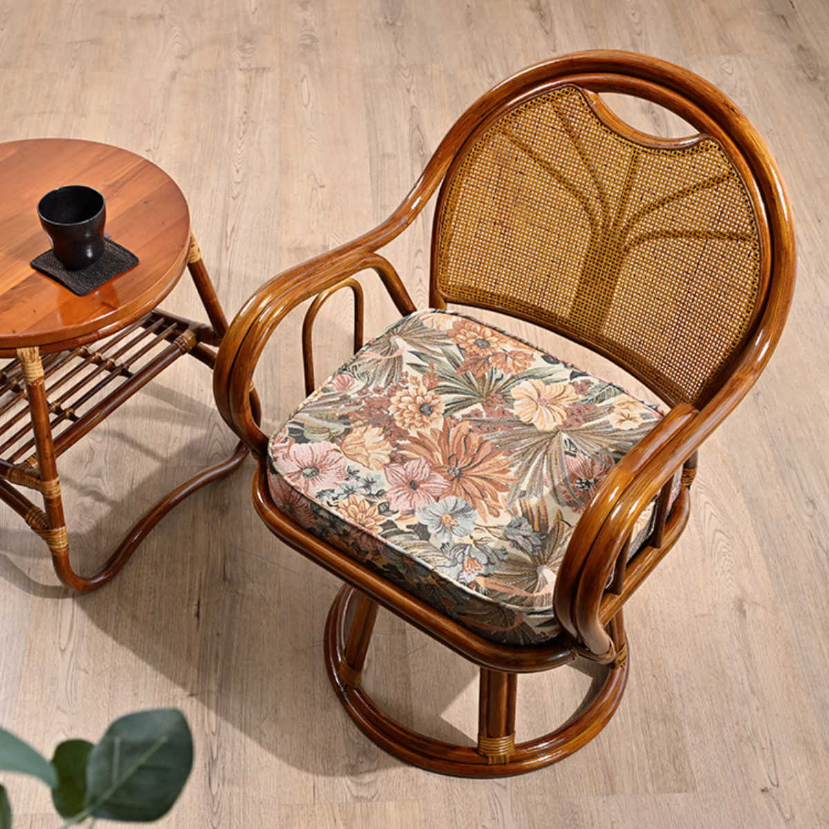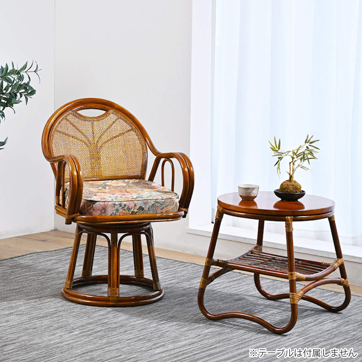 ラタン回転座椅子 ハイタイプ 座面高43cm 花柄 クッション付き 360度回転 ( 回転チェア 高座椅子 和モダン 肘掛け 籐 ラタン 座椅子 完成品 背もたれ 回転椅子 回転座椅子 回転式 回る 360度 通気性 持ち運び 軽量 籐椅子 )