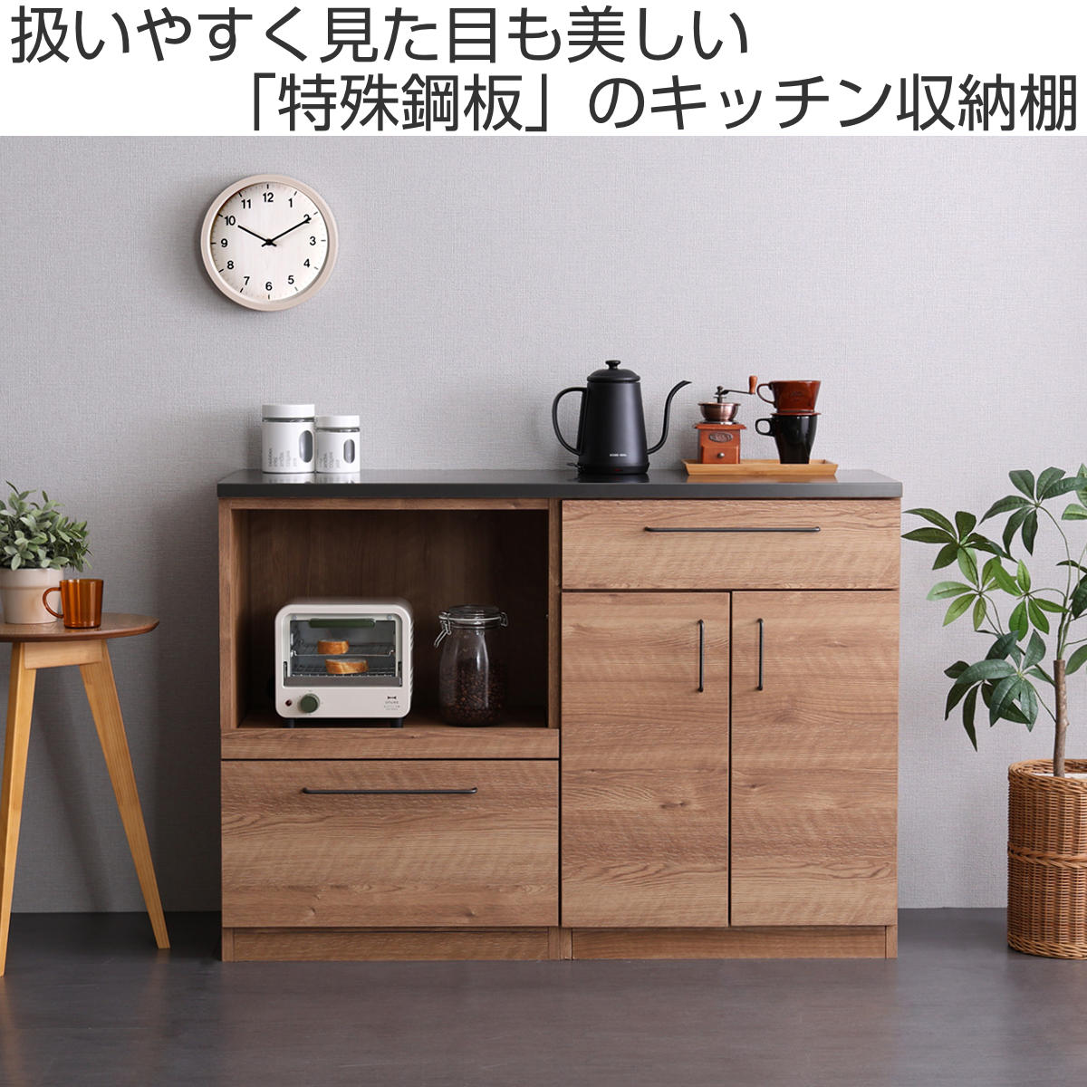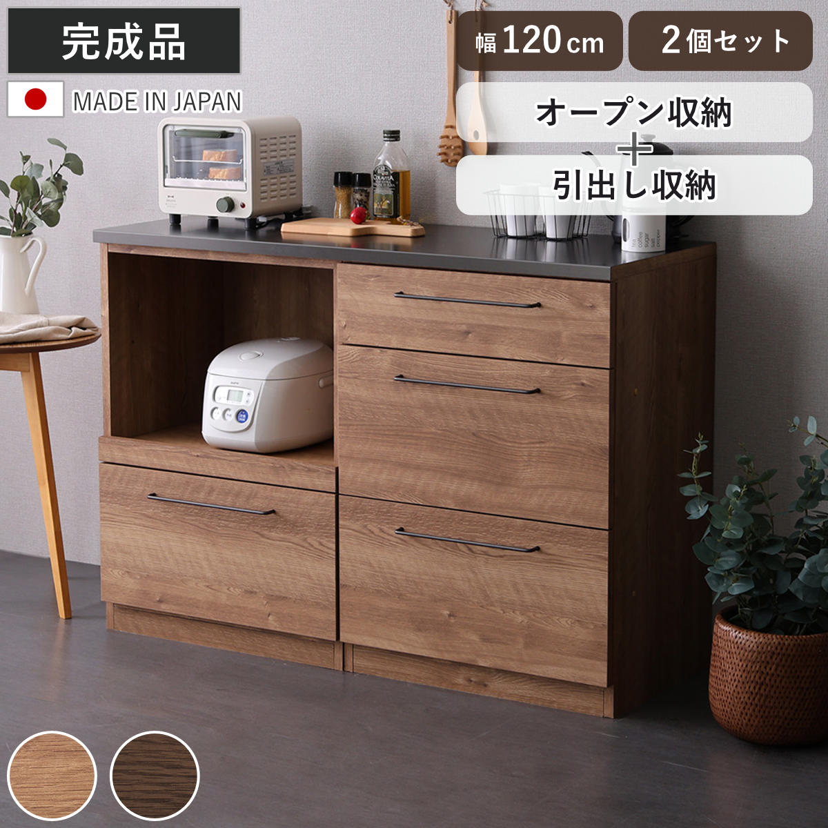 キッチンカウンター 幅120cm 2点セット レンジ台 開き扉 日本製 完成品 スライド棚 特殊鋼板 キッチン収納 ( カウンター キッチン 収納 組み合わせ ルゴ 2台セット フルスライドレール ナチュラル ウォールナット ) 【ナチュラル】