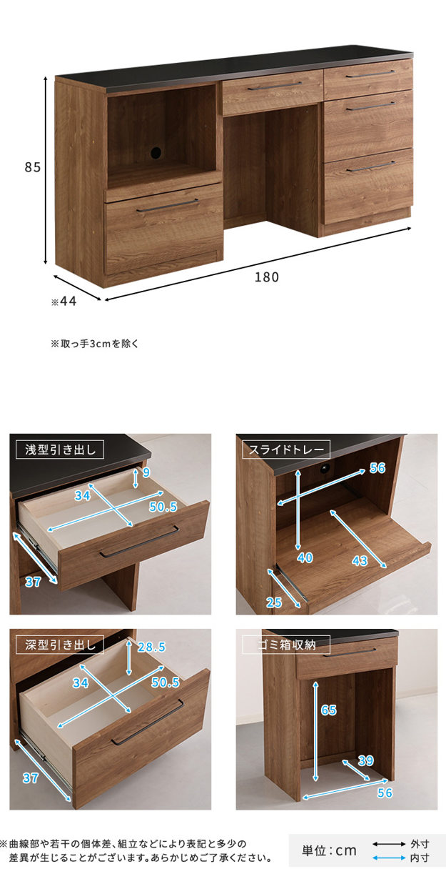 | サイズ | 約 幅180×奥行44×高さ85(cm) |