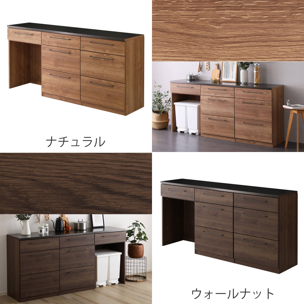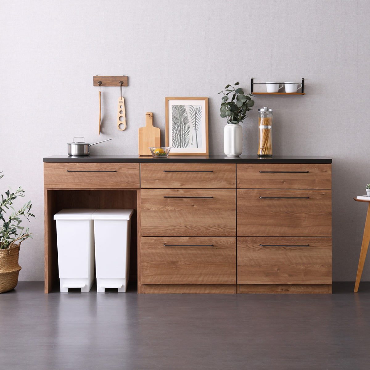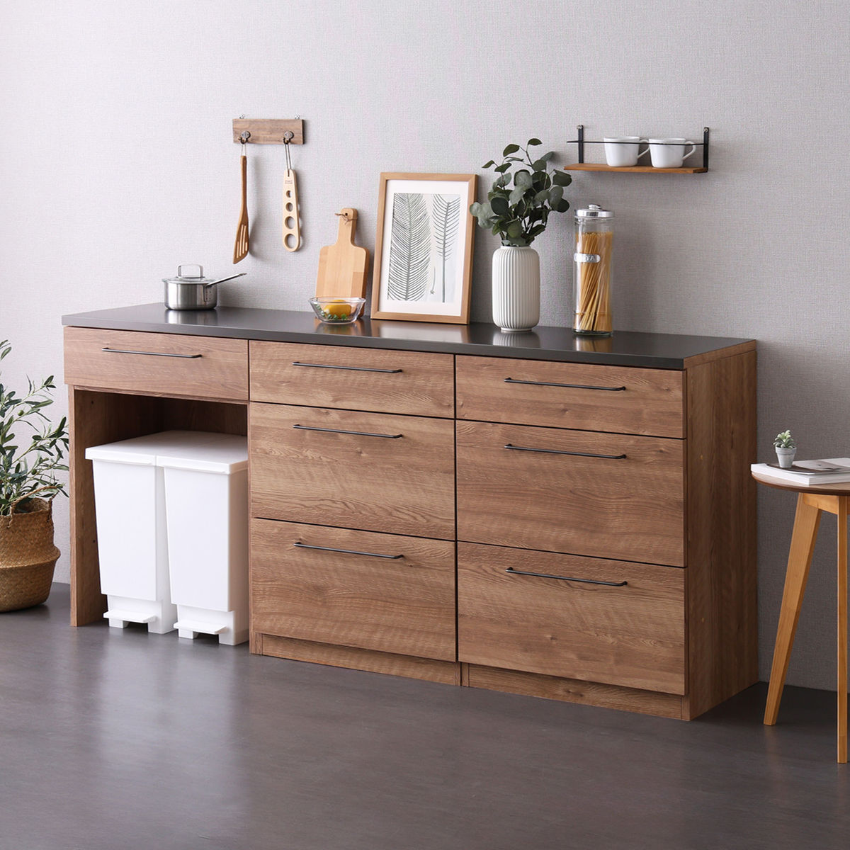 ゴミ箱上カウンター×引出し収納棚2台 幅180cm