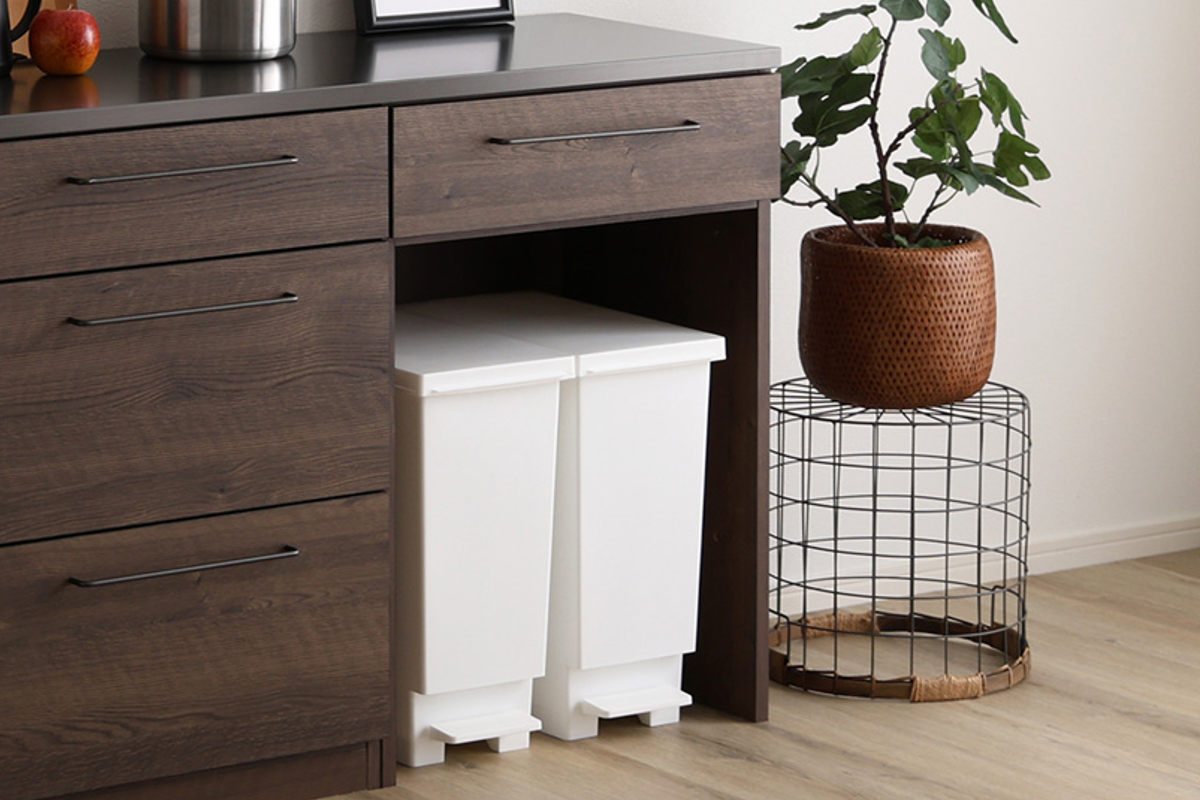 カウンター下にゴミ箱を収納できるため、キッチンをすっきりと見せることができます。デッドスペースになりがちなゴミ箱上を、収納や作業スペースとして有効活用できるので便利です。