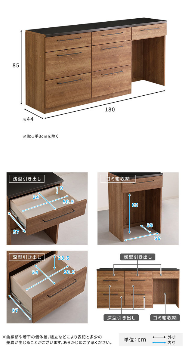 | 内容量 | 1台 (ゴミ箱上カウンター、引出し収納棚×2、天板×1) |
