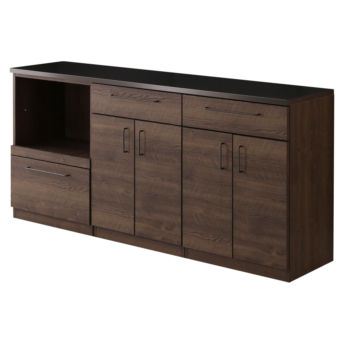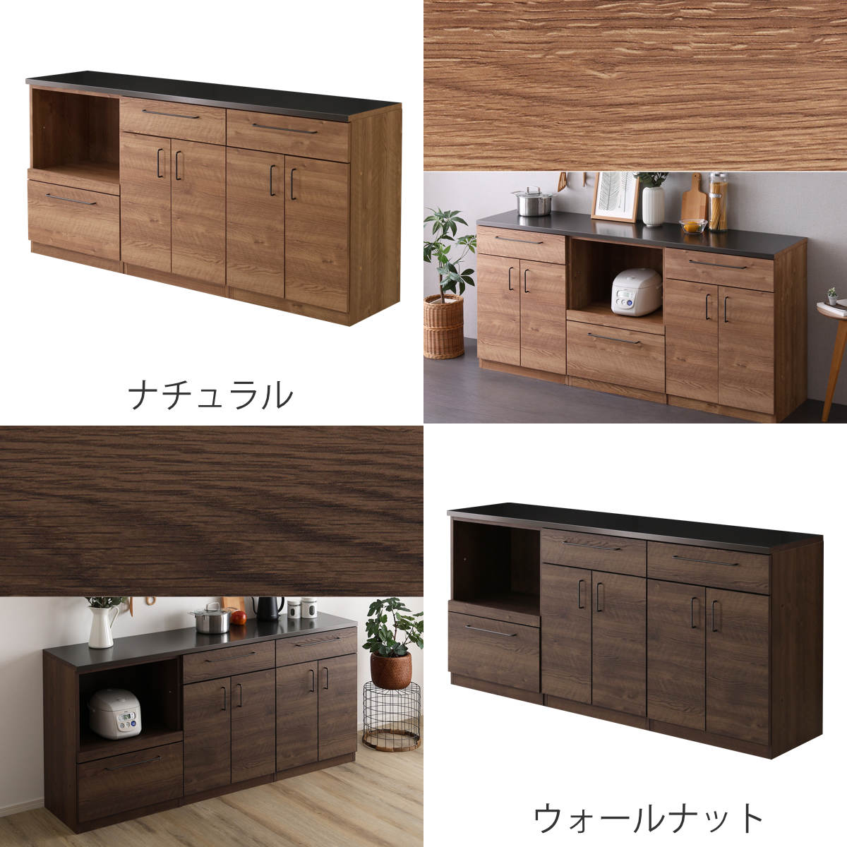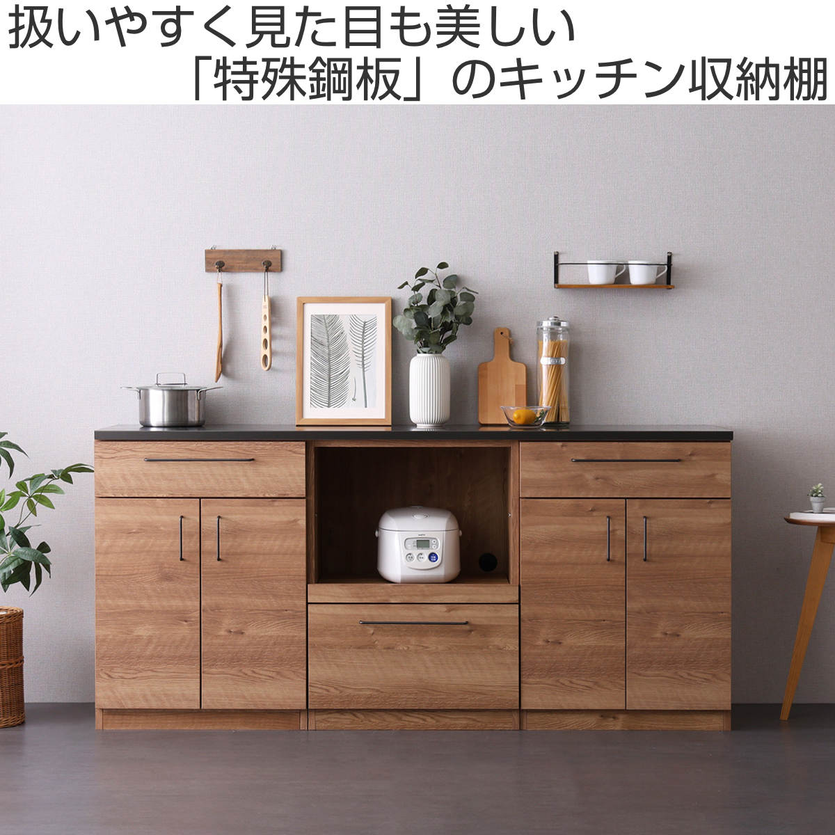 キッチンカウンター 幅180cm 3点セット レンジ台 開き扉 日本製 完成品 スライド棚 特殊鋼板 キッチン収納 ( カウンター キッチン 収納 組み合わせ ルゴ 3台セット フルスライドレール ナチュラル ウォールナット ) 【ウォールナット】
