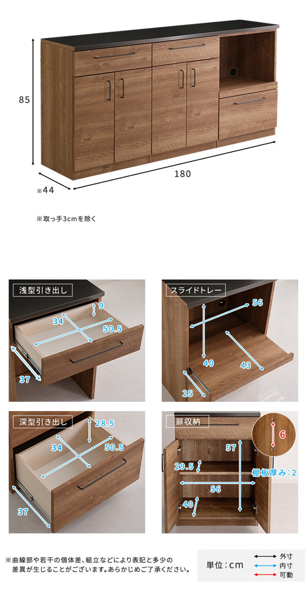 | サイズ | 約 幅180×奥行44×高さ85(cm) |