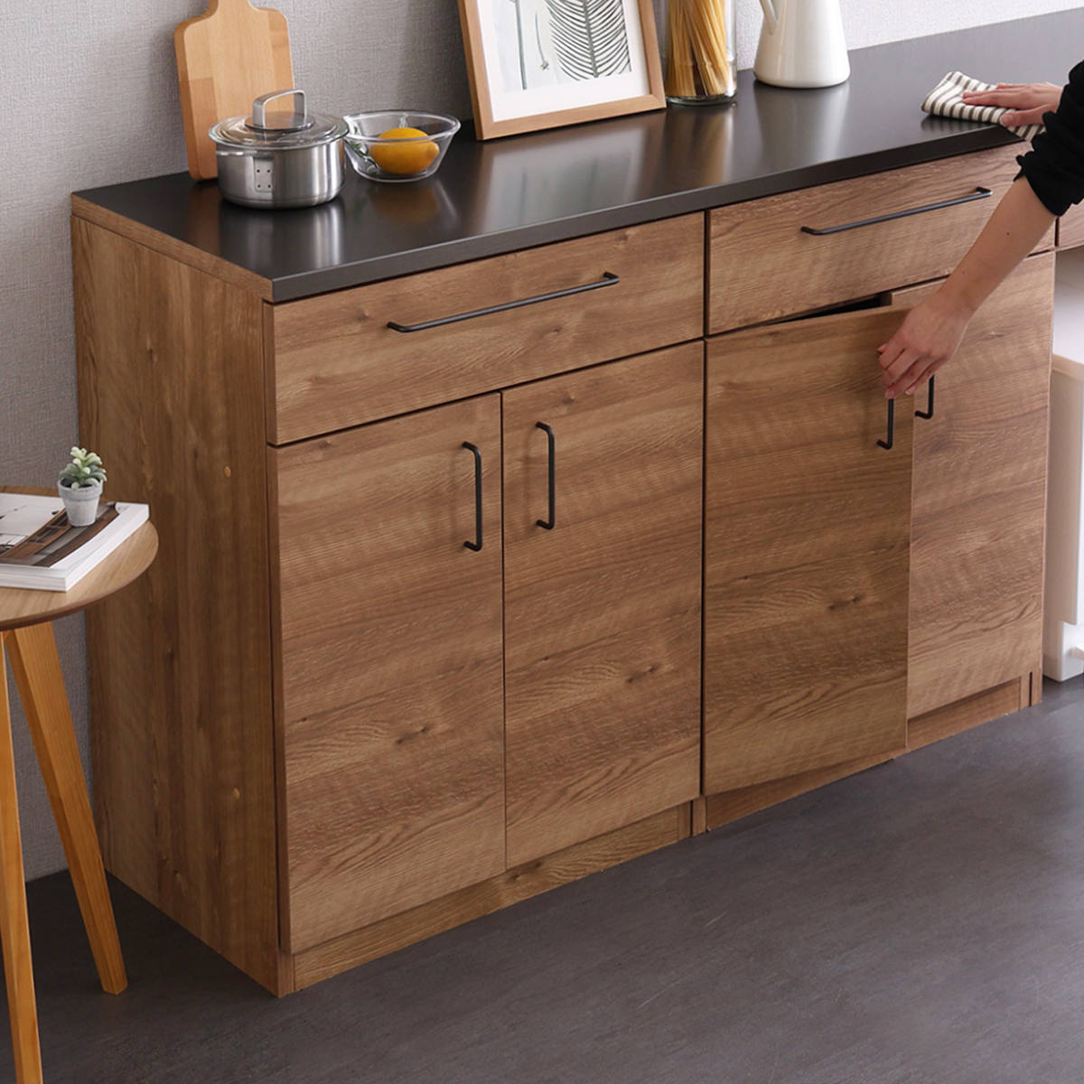 下部には深型の引き出しを備えており、食品のストックやキッチン雑貨の収納に便利です。耐荷重性に配慮したフルスライドレールを採用しているため、収納物が多い場合でもスムーズに奥まで引き出せます。