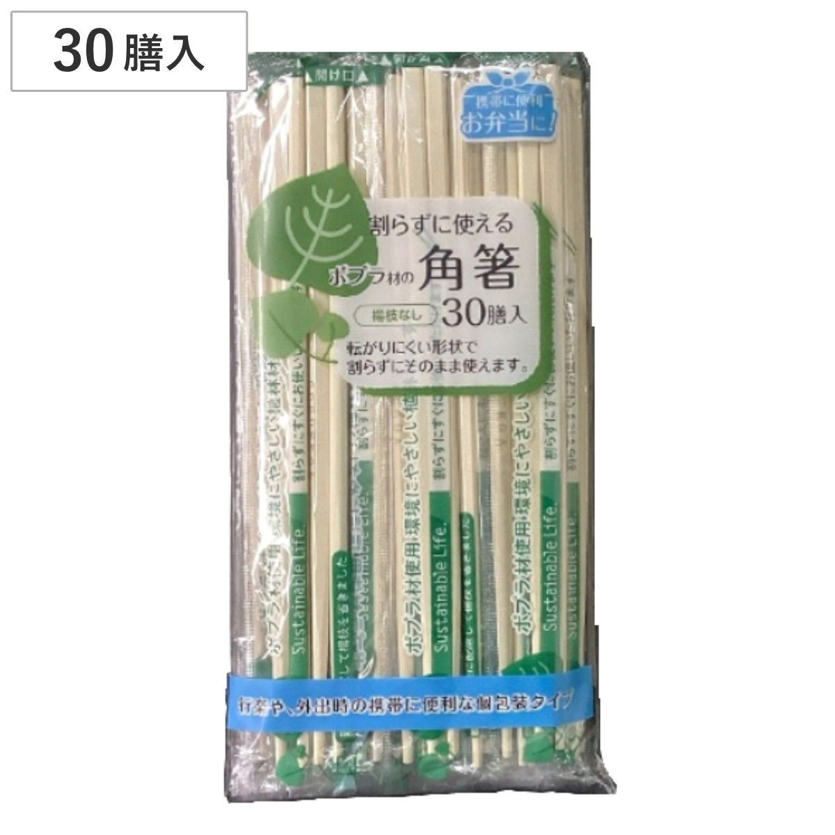 割り箸 割らずに使えるポプラ角箸 30膳 PKー036 ( 割りばし 使い捨て お箸 箸 はし ハシ わりばし 割箸 角箸 ポプラ 植林材 割らない箸 )