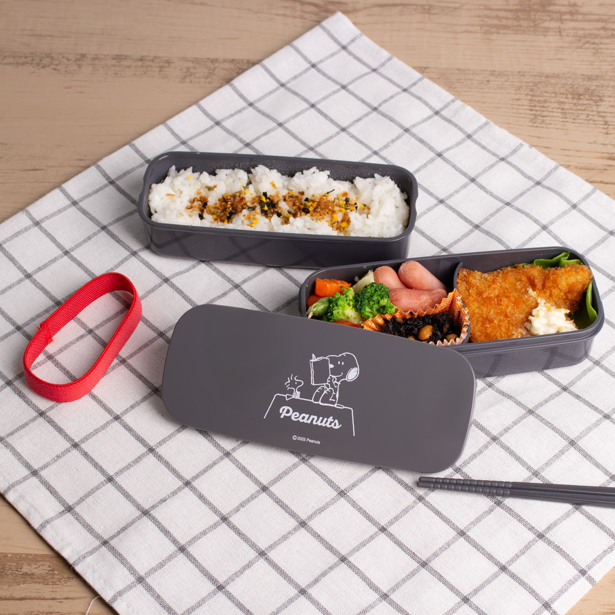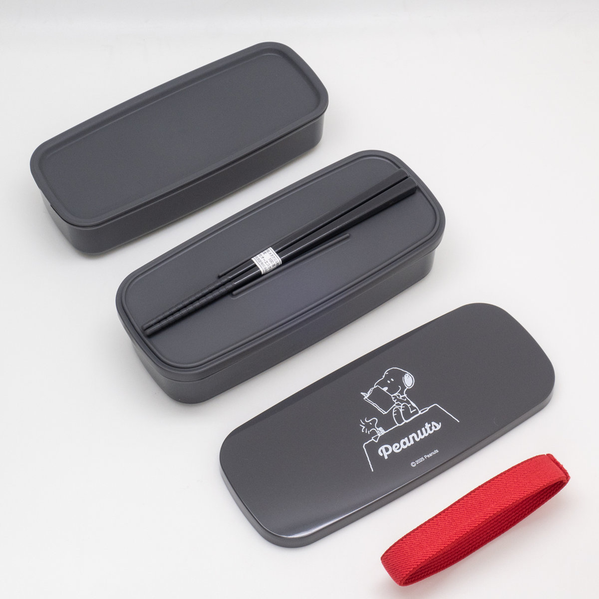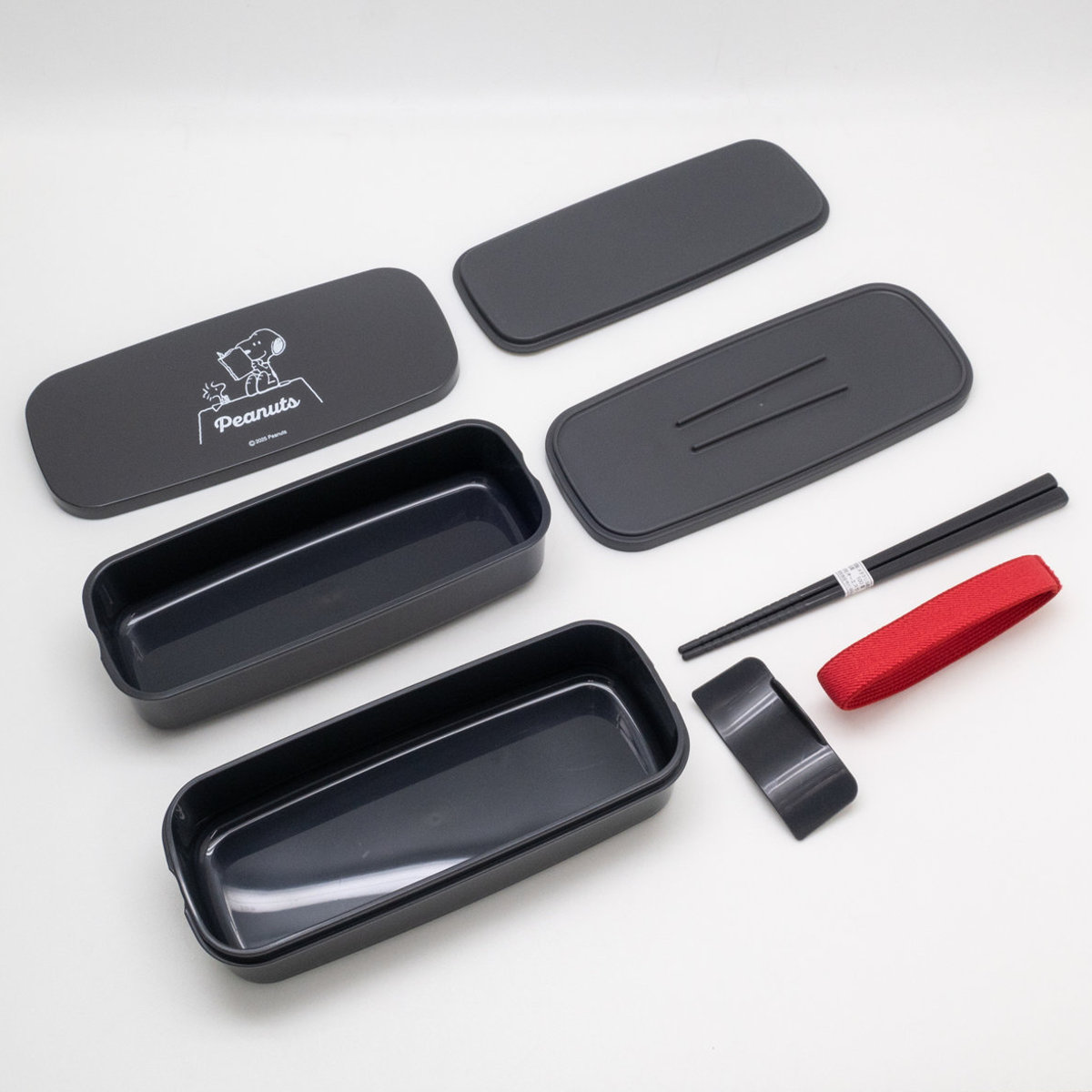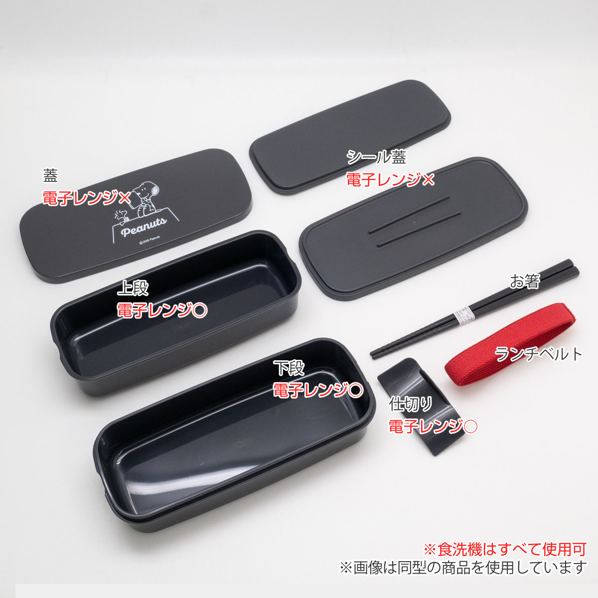 弁当箱 640ml ランチボックス二段 仕切付 スヌーピー ブラック ( お弁当箱 食洗機対応 レンジ対応 抗菌加工 二段 日本製 食洗機OK レンジOK お弁当 弁当 箸付き 入れ子式 ランチベルト付き 仕切り付き 抗菌 女性 女子 )