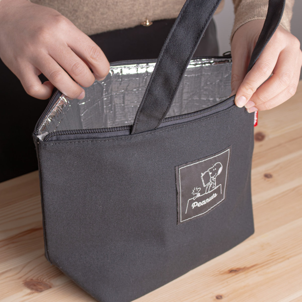 ランチバッグ スヌーピー ブラック ( 保冷 トートバッグ 保冷バッグ クーラーバッグ 保冷ランチバッグ 保冷トート お弁当バッグ お弁当袋 お弁当包み 弁当袋 お弁当入れ ファスナー お弁当箱 )