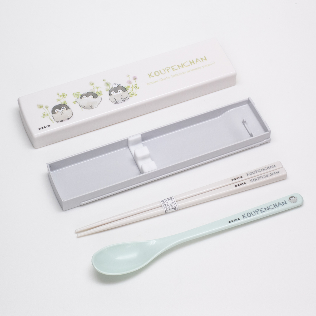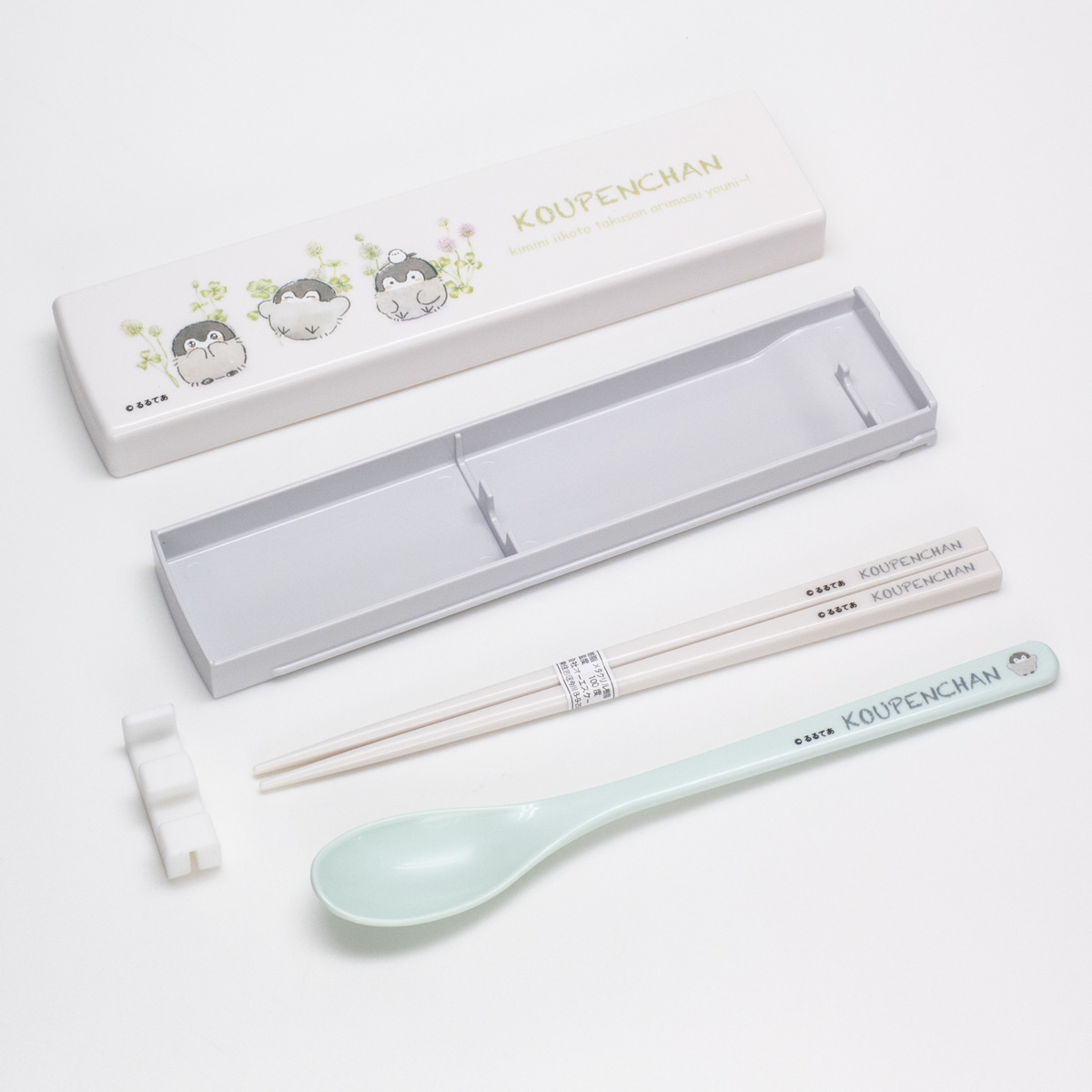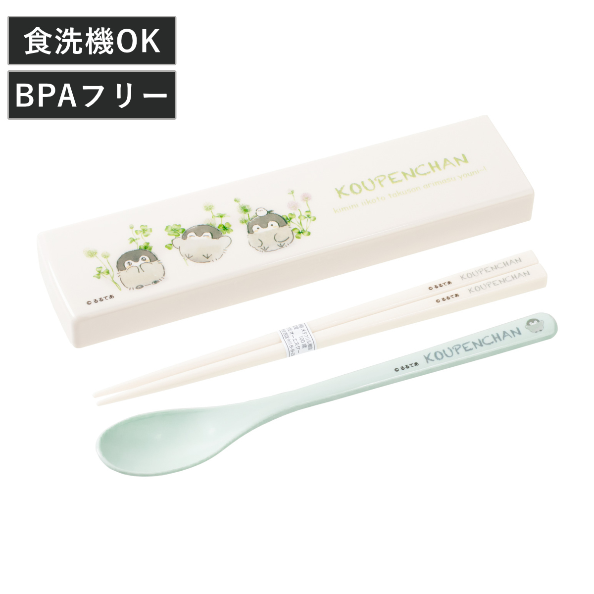 コンビセット 引フタコンビ コウペンちゃん ( スライド 箸 スプーン 18cm 食洗機対応 18センチ お箸 箸箱 カトラリー 食洗機OK カトラリーセット スライド式 携帯用 お弁当 弁当 子供 グッズ )