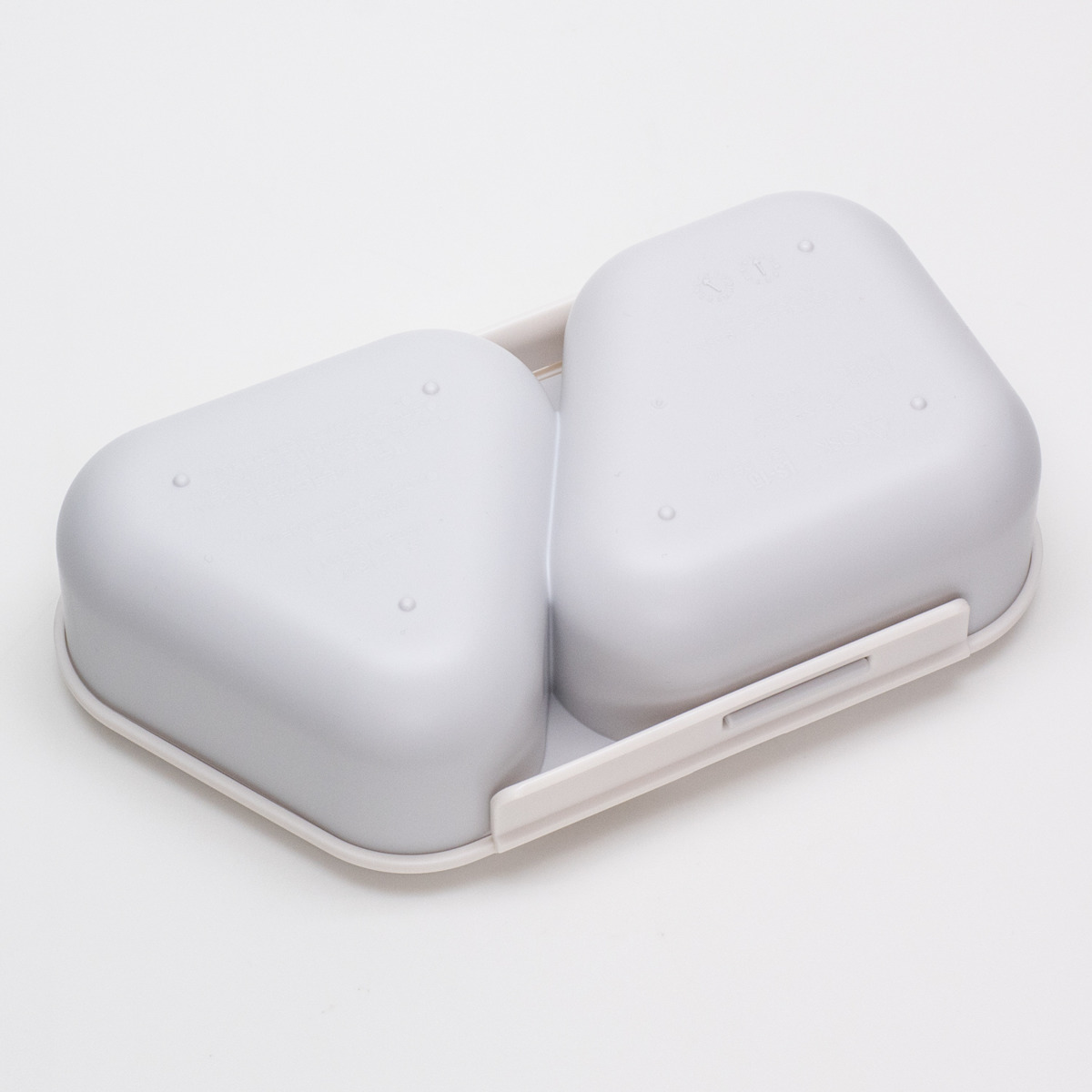 コンビニおにぎりの約1.5倍サイズの大きなおにぎりが簡単に作れるケースです。おにぎり2個を入れたり、おにぎりとおかずを組み合わせたりと、自由な使い方ができます。