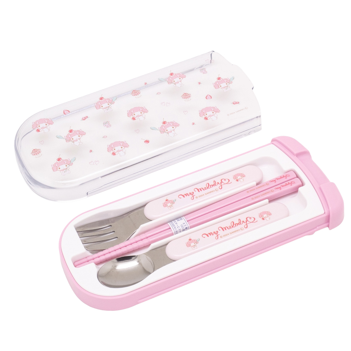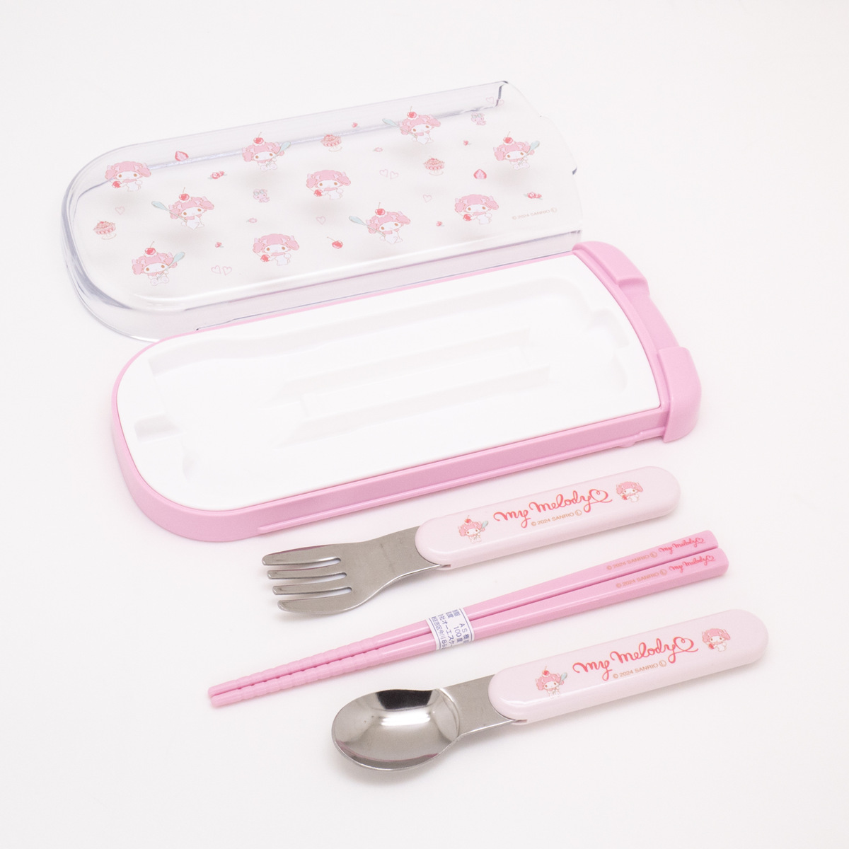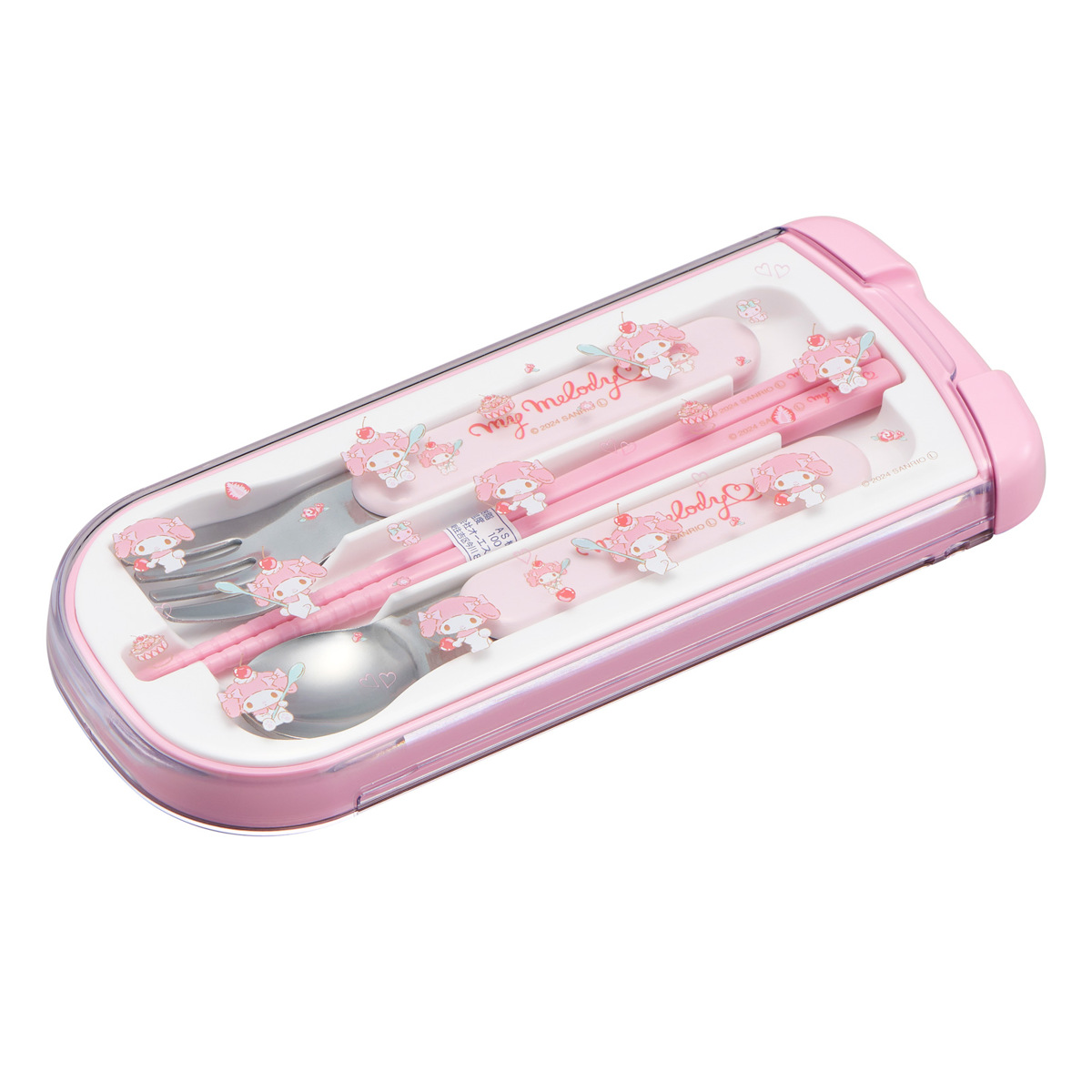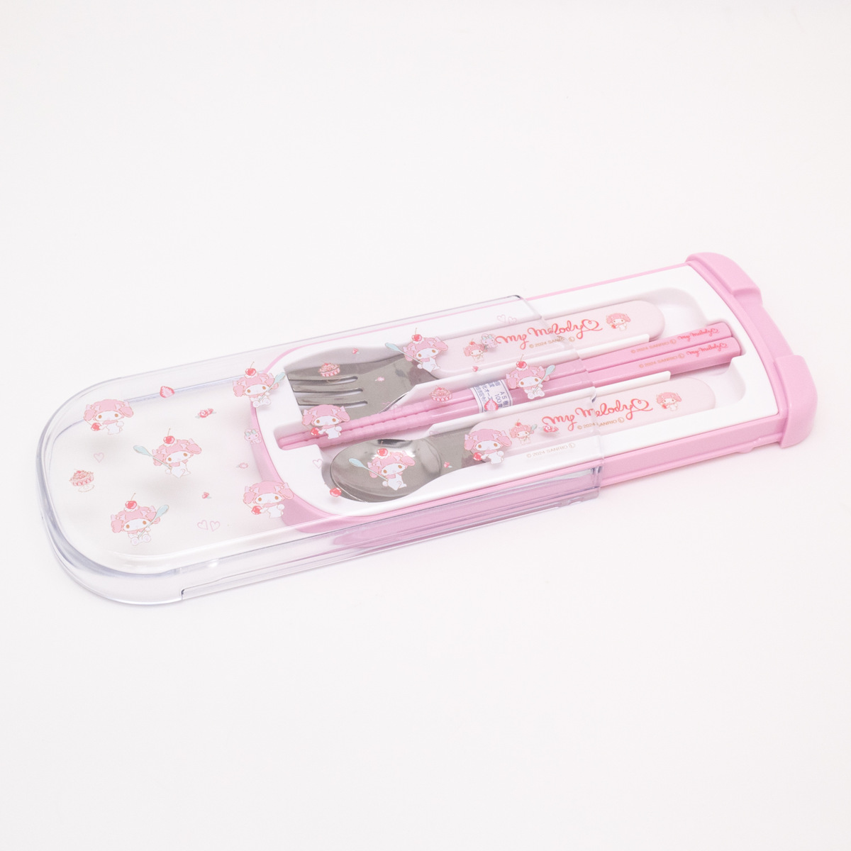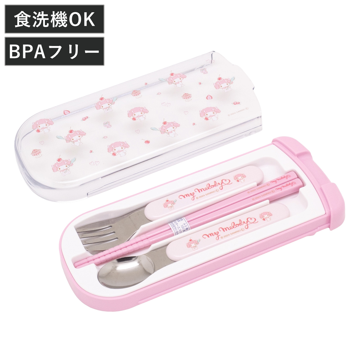 トリオセット 引フタトリオ マイメロディ ( 食洗機対応 抗菌 箸 スプーン フォーク カトラリーセット 子供 日本製 食洗機OK カトラリー お箸 お弁当 弁当 給食 キッズ スライド式 )
