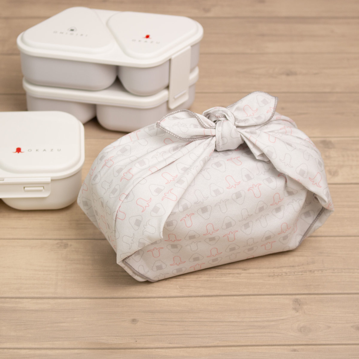 ●おにぎりとタコさんウィンナーのパターン柄のランチクロスで、お弁当タイムを楽しく演出してくれます。