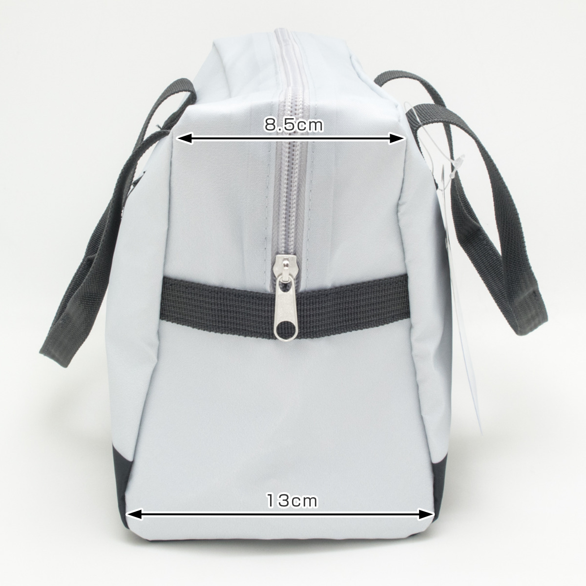 口が大きく開くようにファスナーはサイドまであります。マチが約13cmあるのでコンパクトながら、しっかり入り、お弁当箱の出し入れもラクです。