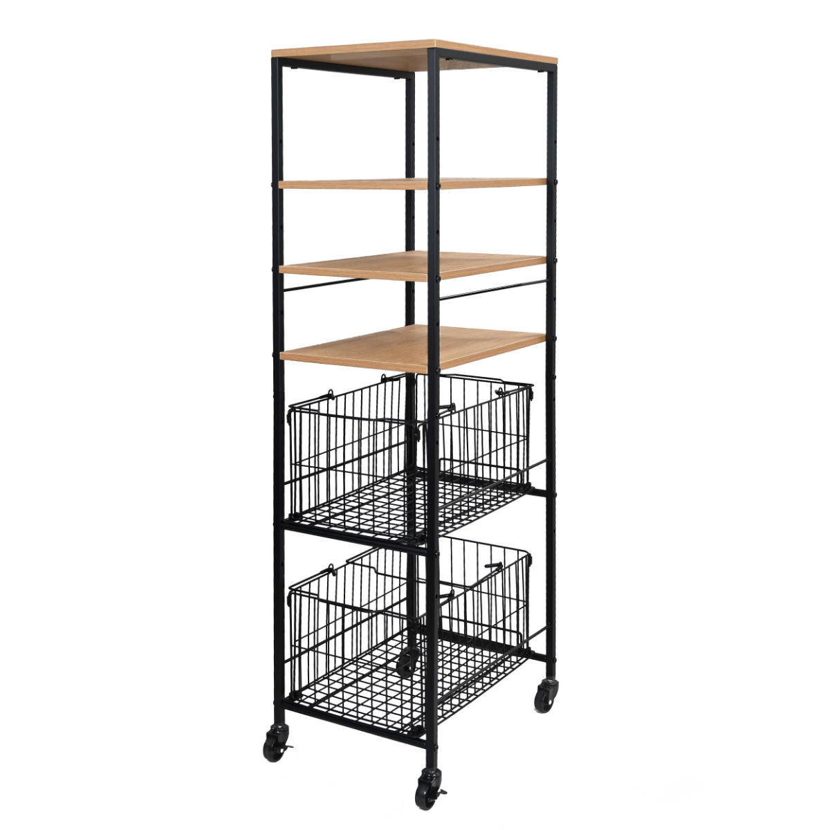 キッチンラック 幅38.5cm キッチン収納 大容量 隙間収納 木目調 可動棚 キャスター付き ( ラック 棚 バスケット付き すき間ラック キッチンワゴン すき間収納 カゴ付き すきま収納 ランドリー収納 洗面所収納 おしゃれ )
