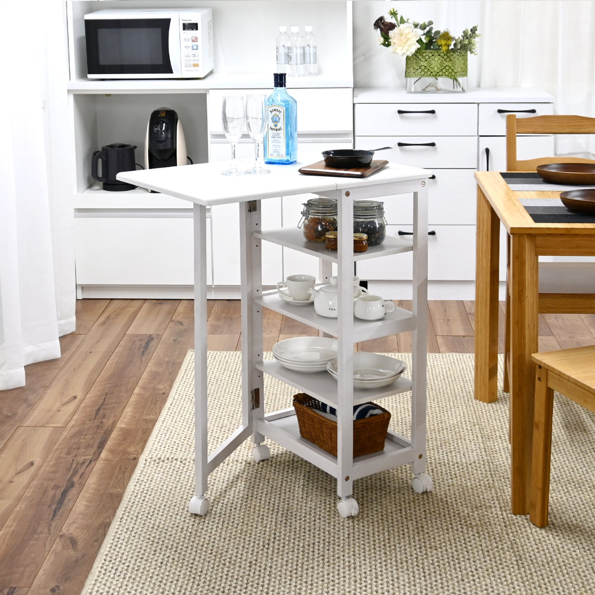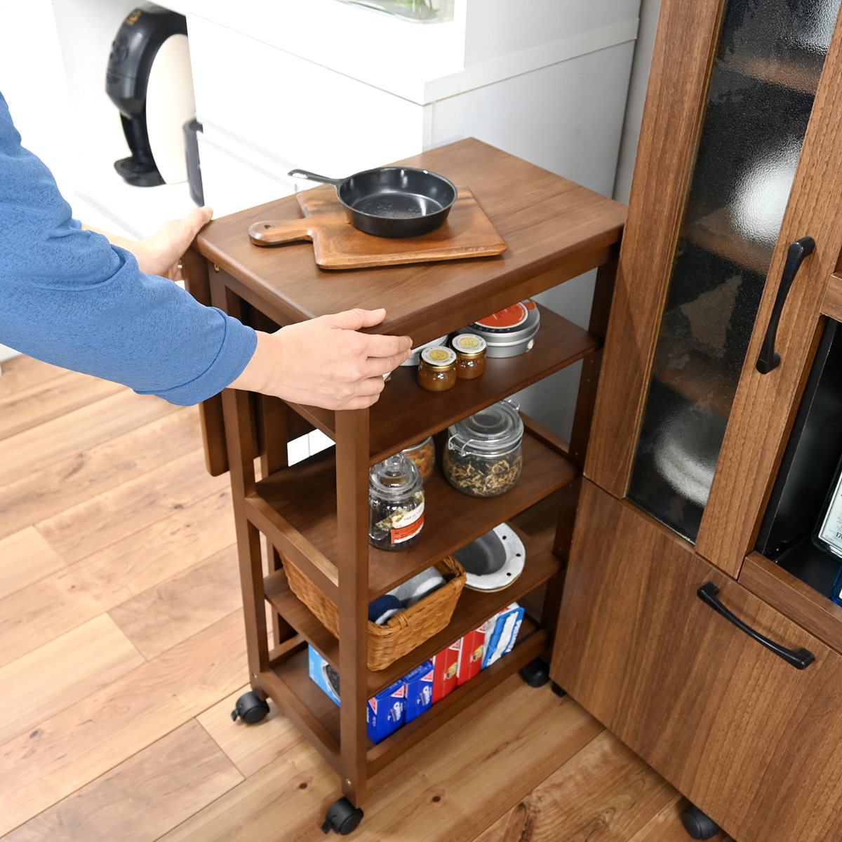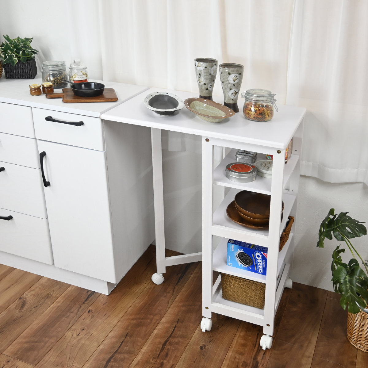 使う時だけ広がる「片バタ天板」キッチンワゴン