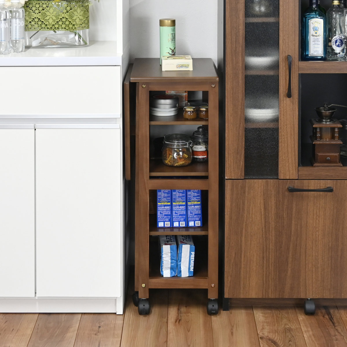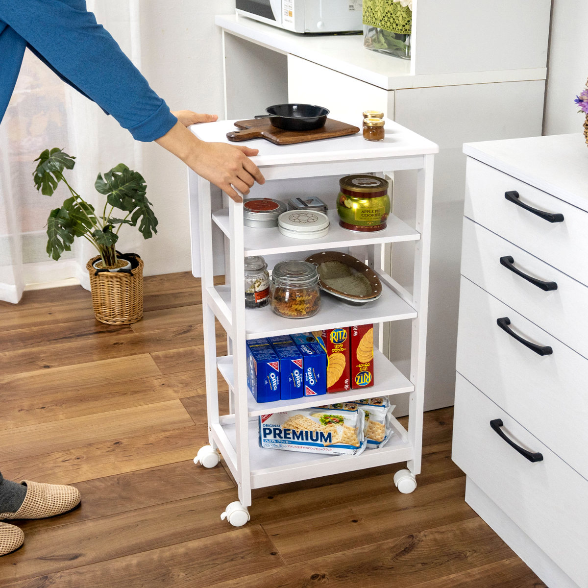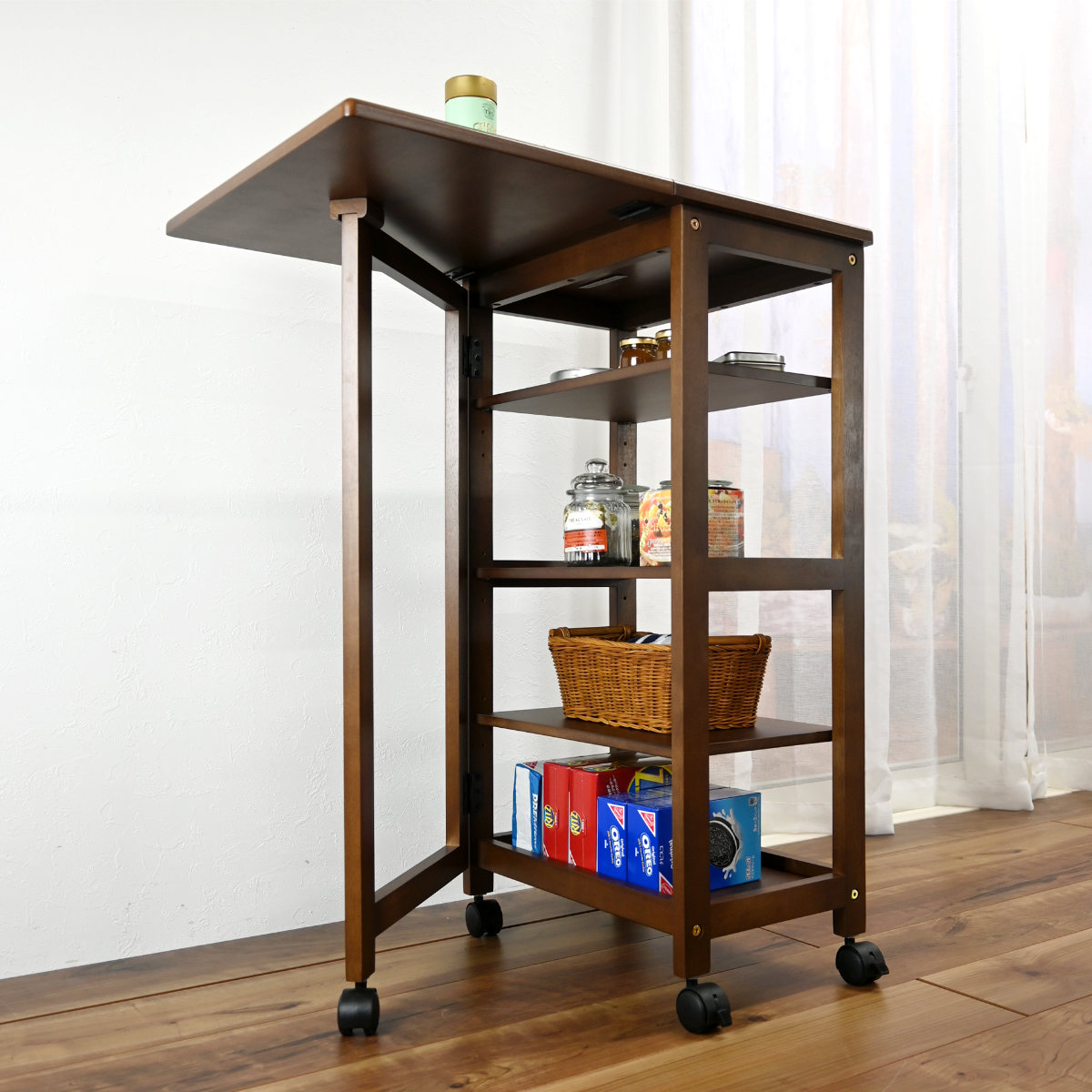 使う時だけ広がる「片バタ天板」キッチンワゴン