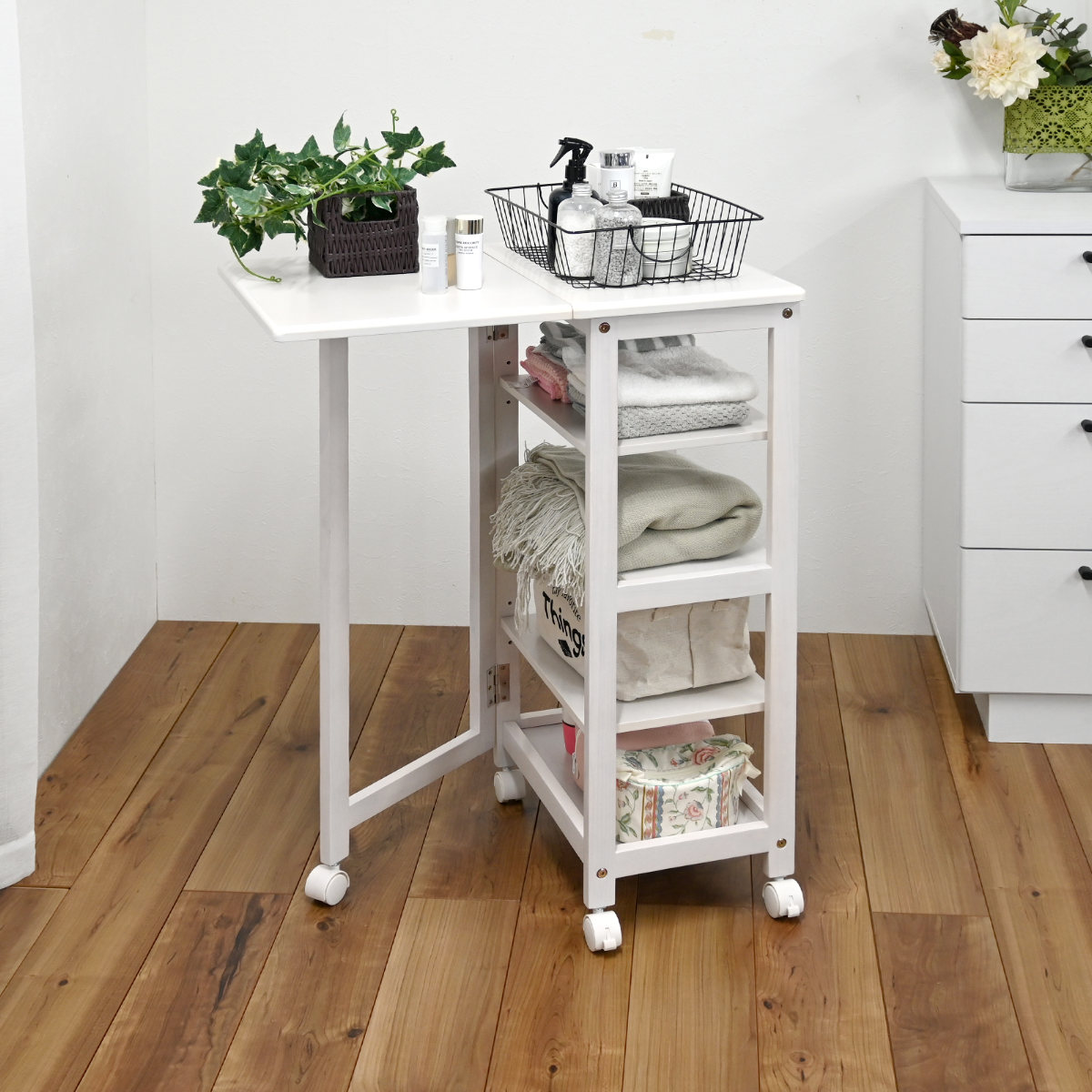 コンパクトさと機能性を両立した、使い勝手の良い折りたたみ式キッチンワゴンです。キッチンはもちろん、ランドリーや書斎など、さまざまなシーンで活躍します。
