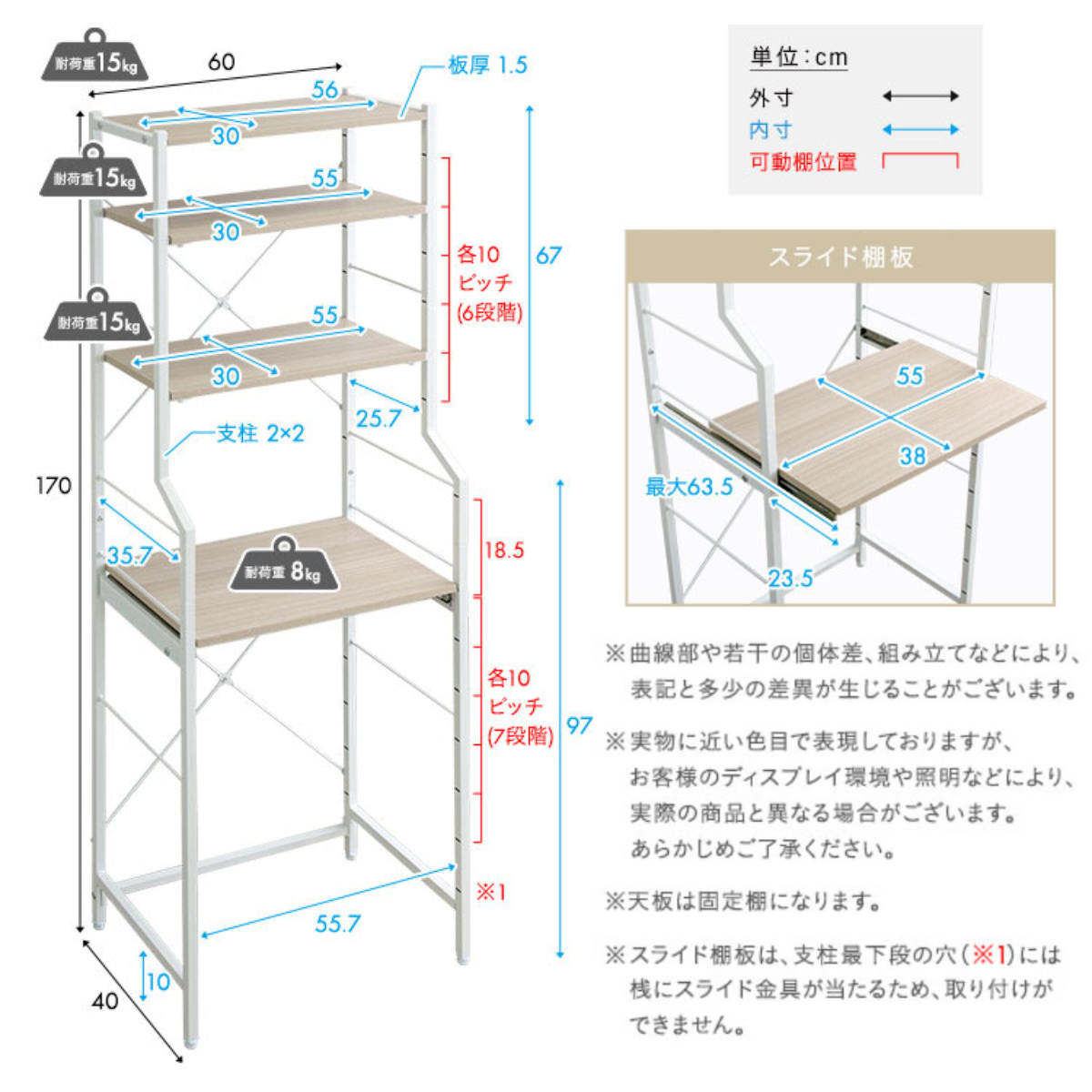 | 耐荷重 | スライド棚:8kg |