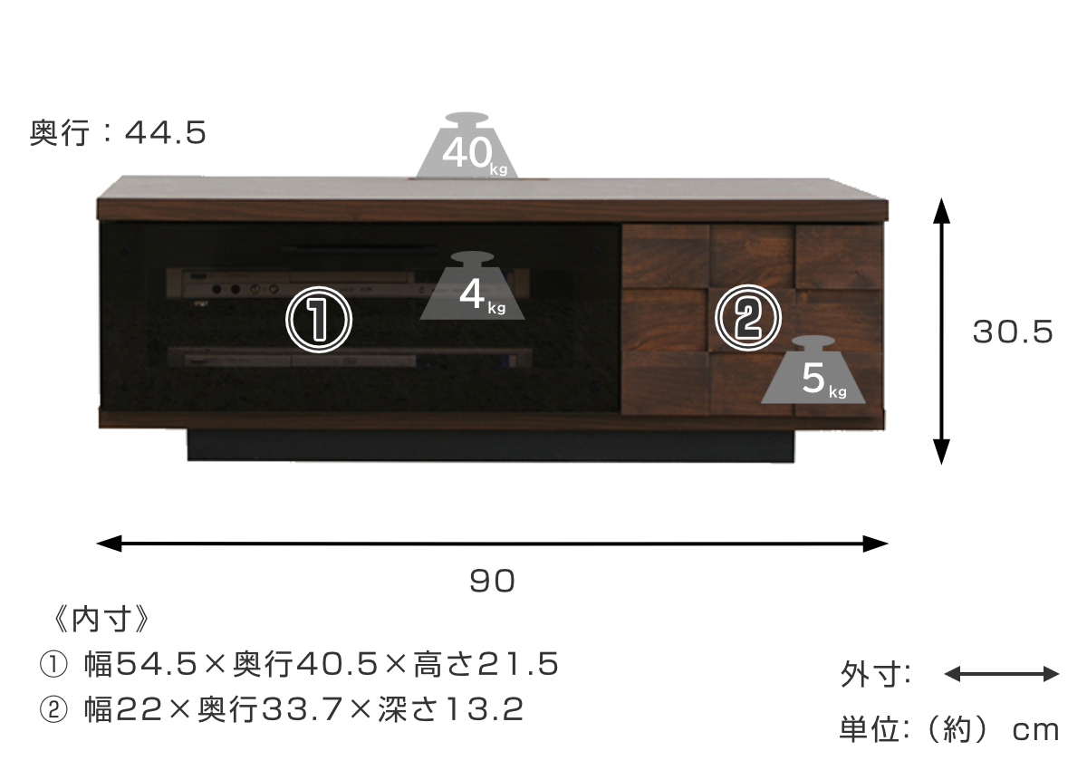 サイズ約 幅90×奥行44.5×高さ30.5(cm)