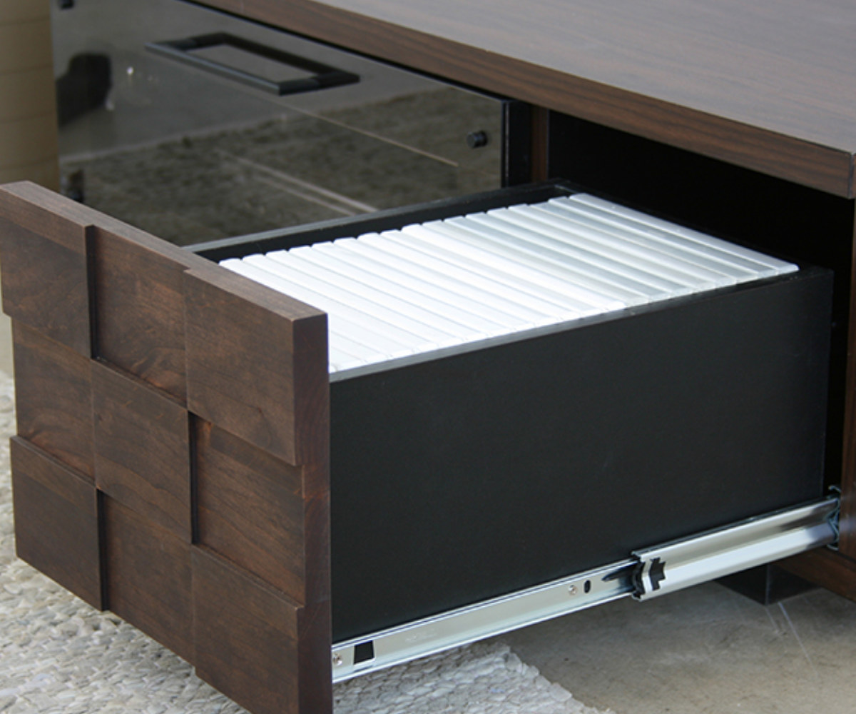 DVDやゲーム機の収納に便利なサイズ感。フルスライドレール仕様で奥までしっかり引き出せるため、収納物の出し入れもスムーズに行えます。