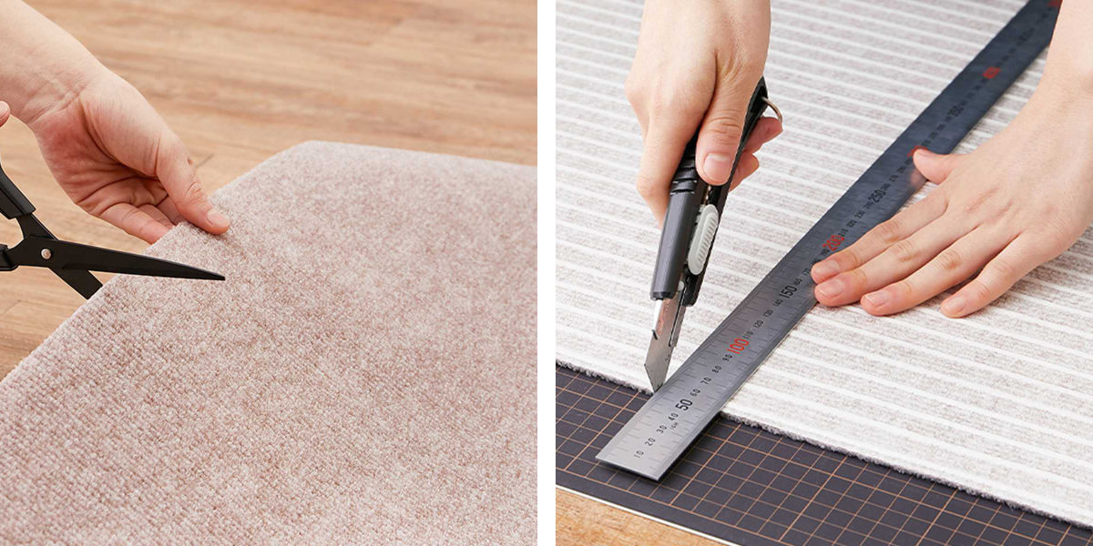 ハサミやカッターで楽に切れるため、スペースに合わせてピッタリ敷くことができます。長さ調節や柱・家具などに合わせた凹凸カットも簡単です。