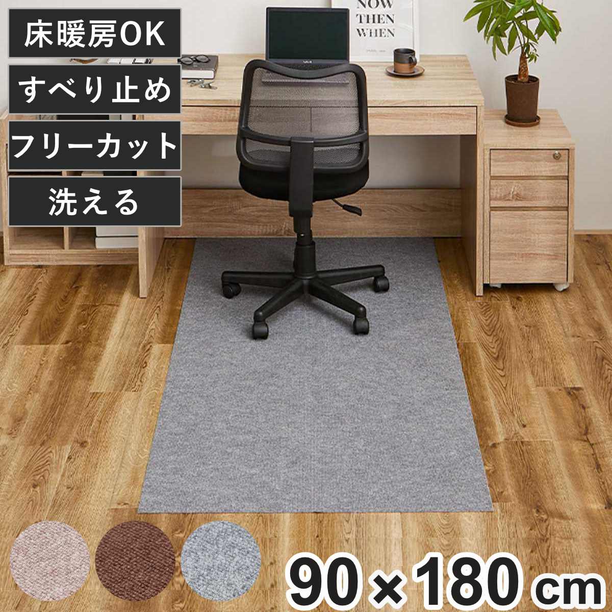 吸着チェアマット 滑りにくい フリーカット 90x180cm ( カーペット マット ラグ 滑り止め ラグマット 絨毯 チェアマット 椅子マット じゅうたん 床暖対応 床暖 床暖房 ホットカーペット インテリア すべり止め 消臭 チェア 椅子 ) 【グレー】