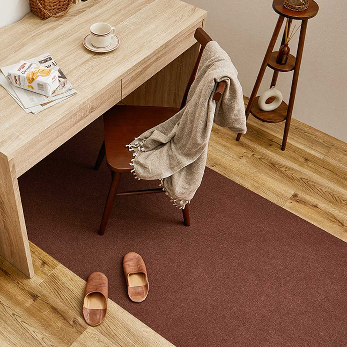 寒い季節には、ホットカーペットや床暖房と併用してお使いいただけます。デスクまわりの足元をやさしく温め、学習や作業の時間も快適に過ごせます。