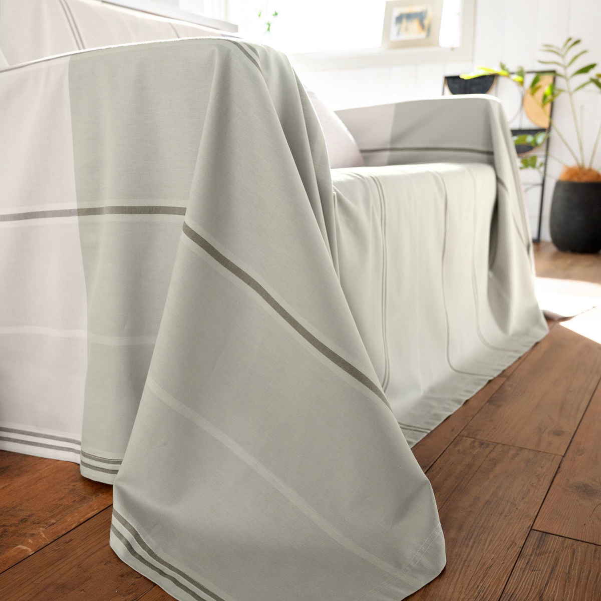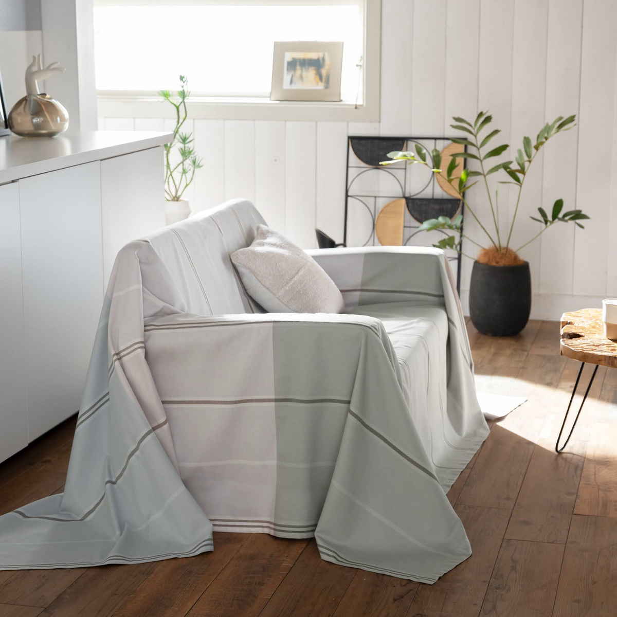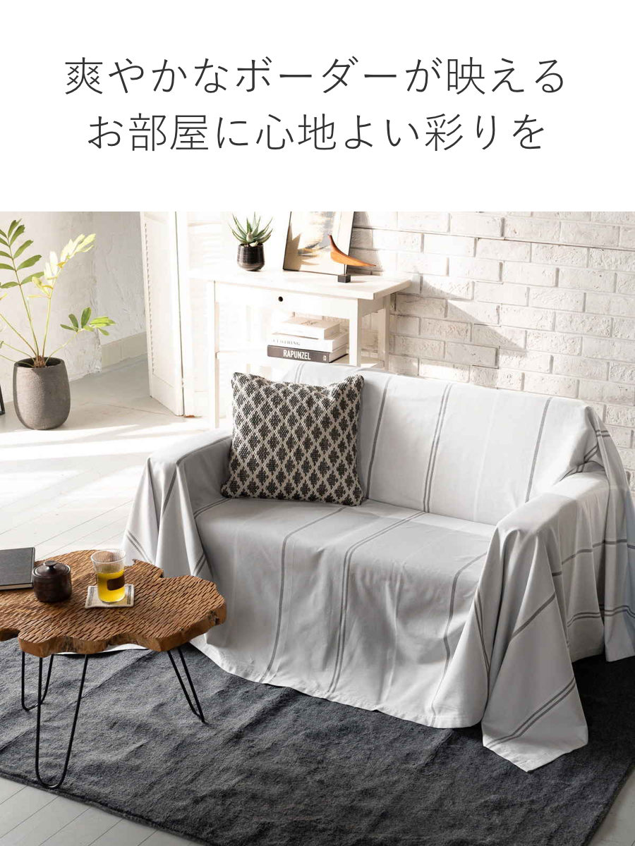 シンプルで使いやすいデザインなので、ソファカバーとしてはもちろん、ベッドカバーやベッドスプレッドなどさまざまな用途でお使いいただけます。掛けるだけでお部屋の印象を手軽に変えることができ、シーンやインテリアに合わせて自由に楽しめるマルチカバーです。
