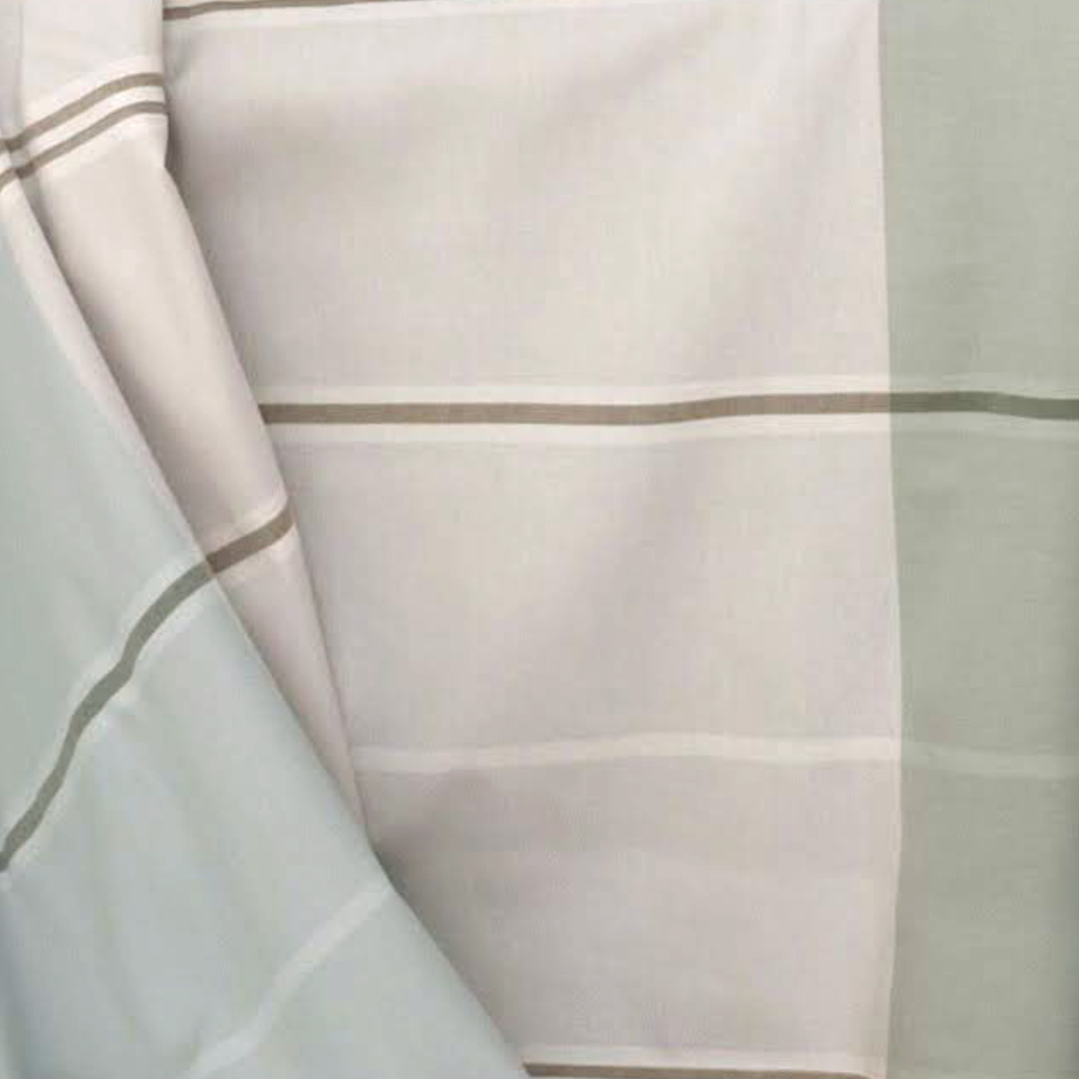 先染めの色糸を使い、3段のブロックボーダーを織りで表現した「ヴィスタシリーズ」。プリントとは異なる自然な表情で、お部屋を落ち着いた雰囲気に演出します。