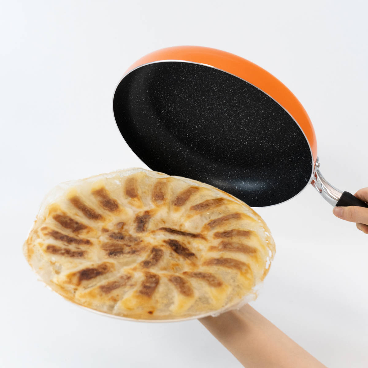 取っ手の付け根がフライパンのフチ部分より少し上に付いているので、持ちやすく調理がしやすいです。