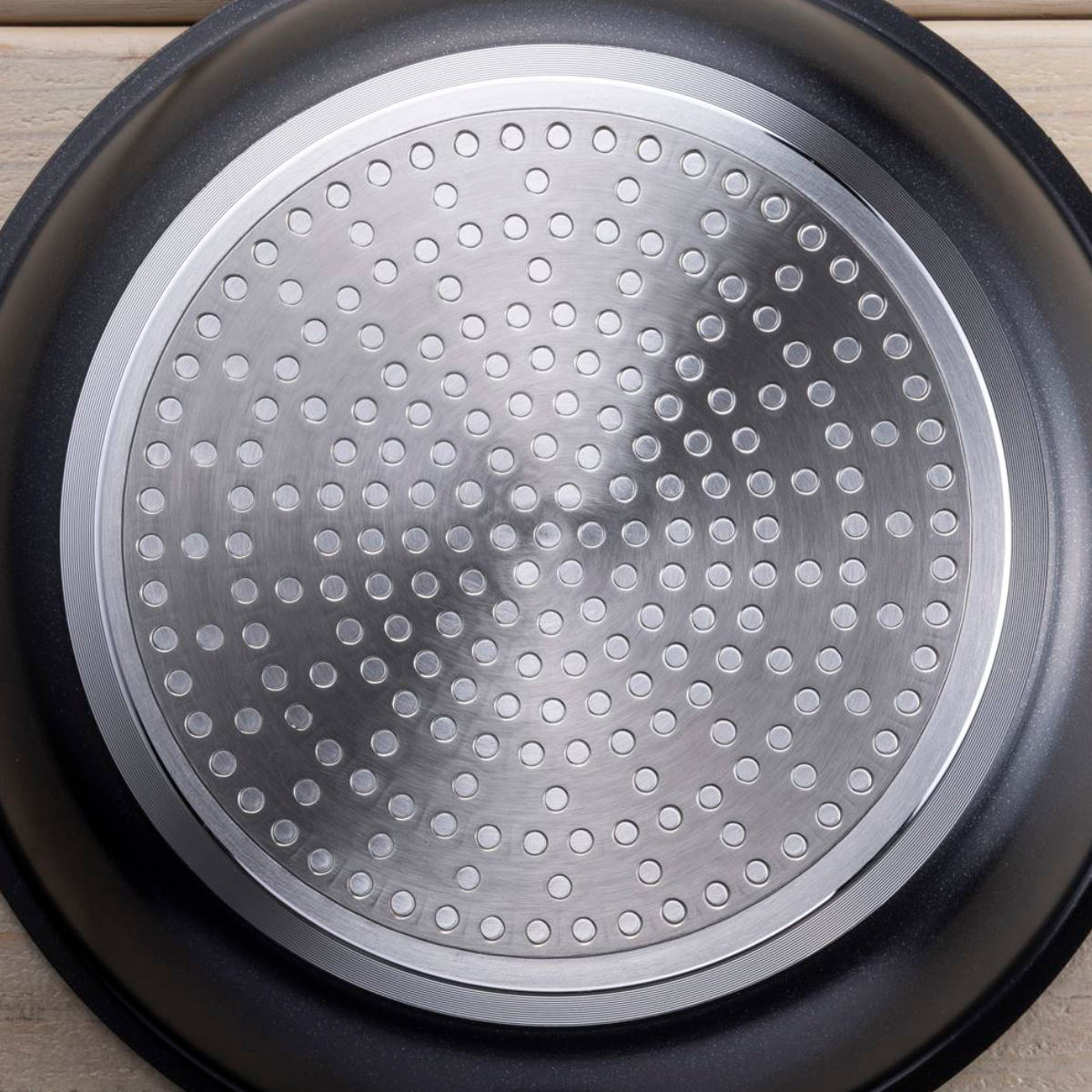 熱伝導性に優れたアルミ素材を使用しています。食材にムラなく火が入り、美しい焼き色に仕上がります。調理面にはマーブルコート加工を施しているため、焦げ付きにくく、少量の油でもヘルシーに調理できます。汚れが落としやすくお手入れも簡単です。