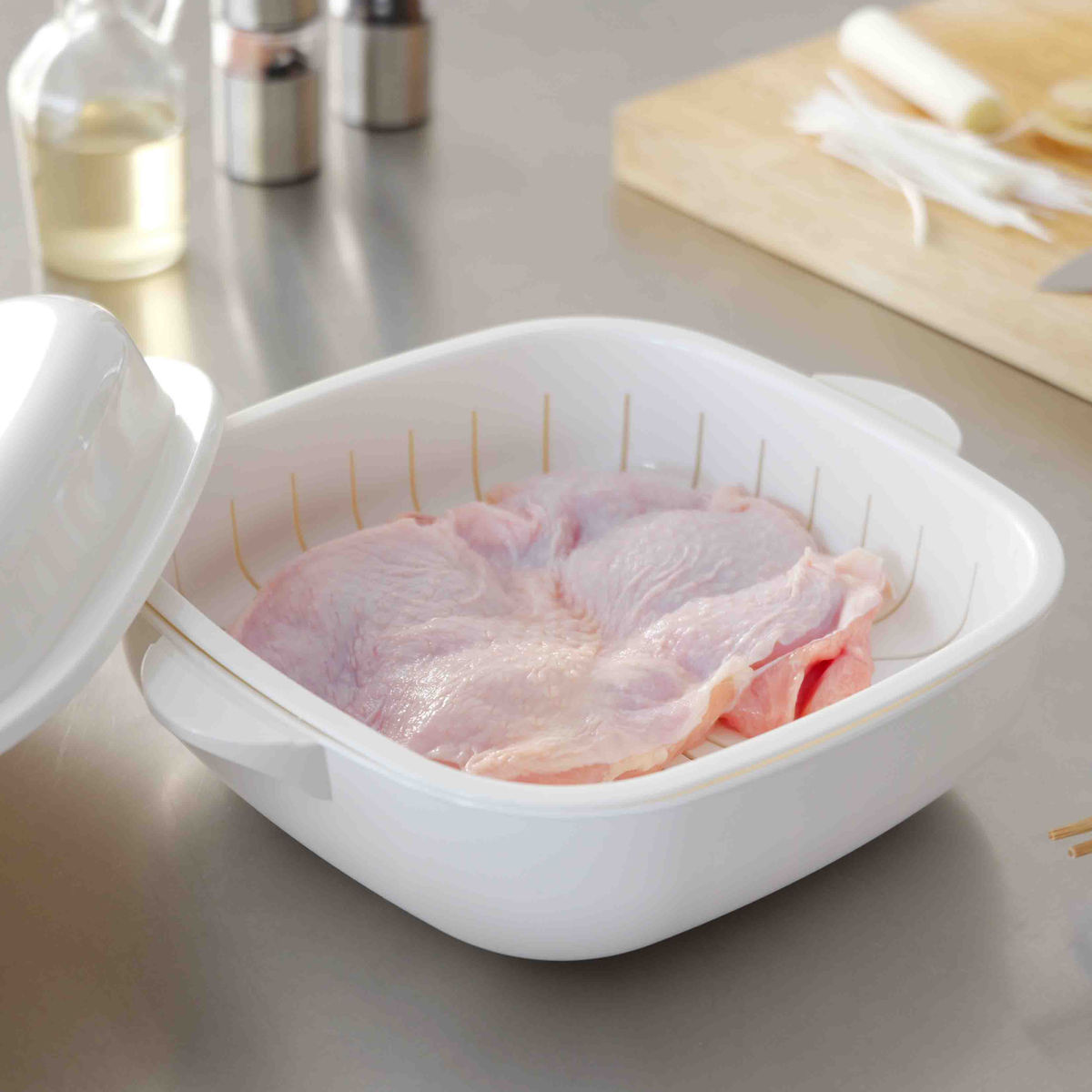 食材の漬け込みや電子レンジで野菜の下茹でなど、下ごしらえにもお使いいただけます。