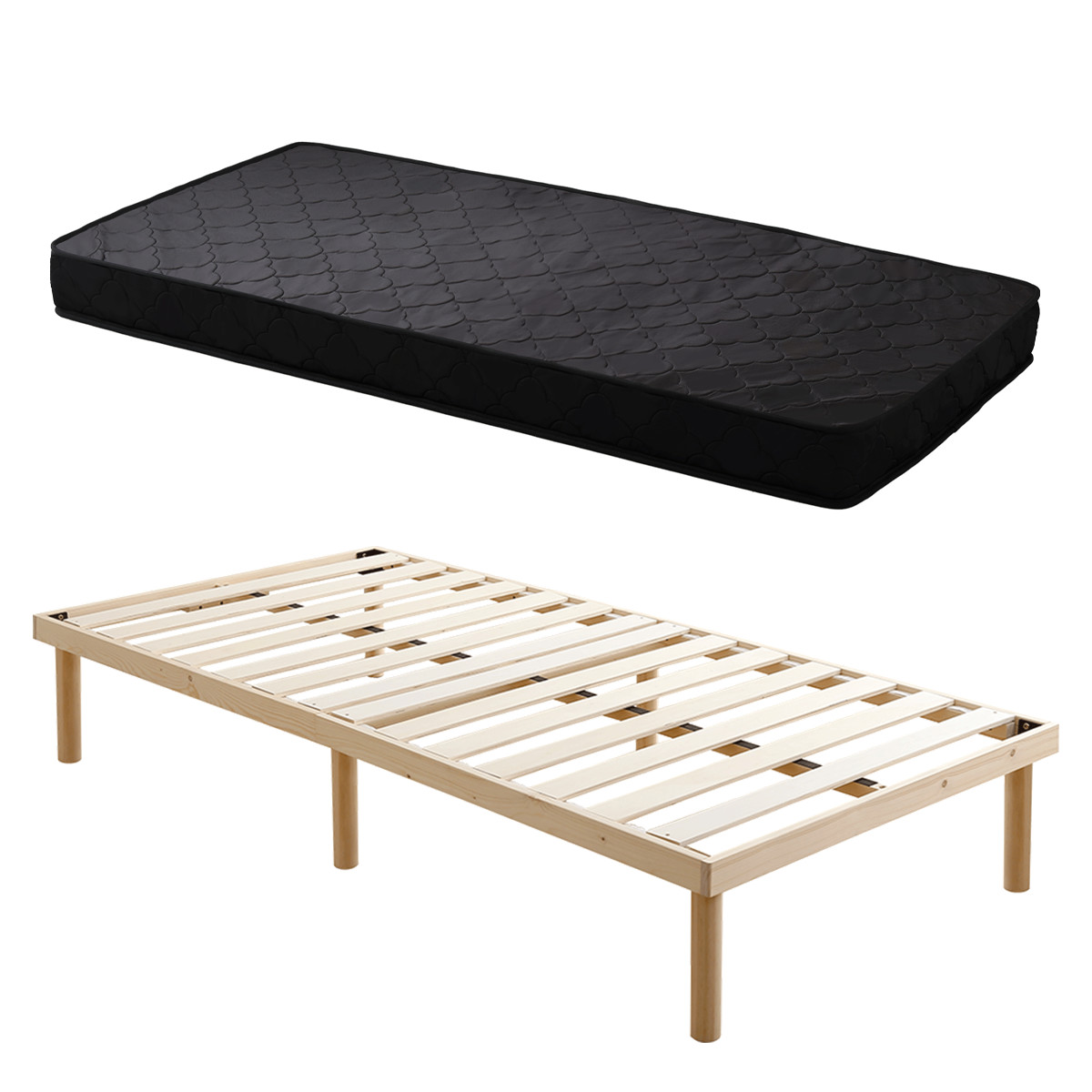 すのこベッド シングル ポケットコイル マットレス付き 北欧パイン 天然木 耐荷重200kg ( ヘッドボードなし 2段階 高さ調節 ロータイプ ハイタイプ 低ホルムアルデヒド ベッドフレーム ブラウン ナチュラル ホワイトウォッシュ ) 【ナチュラル×ブラック】