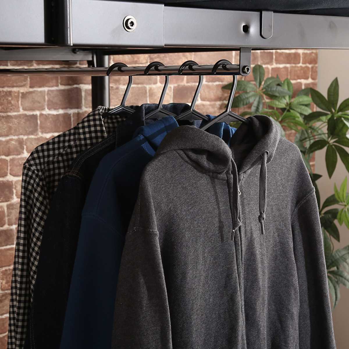 ハンガーパイプ付きなので、ベッド下のスペースをクローゼットのように使うこともできます。よく着る服をサッと取り出せて、毎日の身支度もスムーズです。
