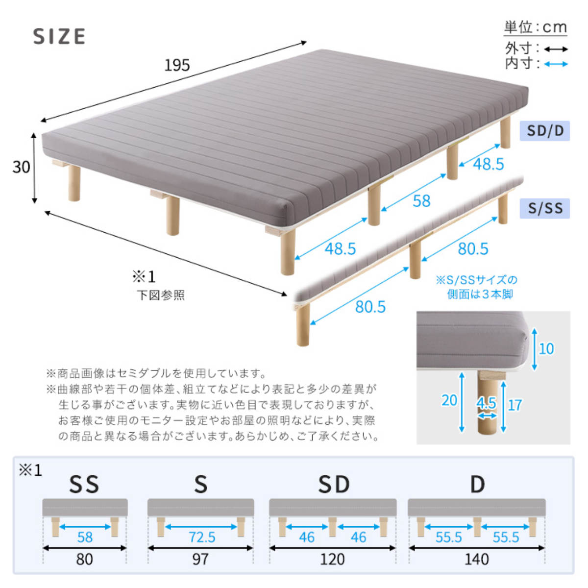 ※サイズによって脚の本数や、静止耐荷重が異なります。