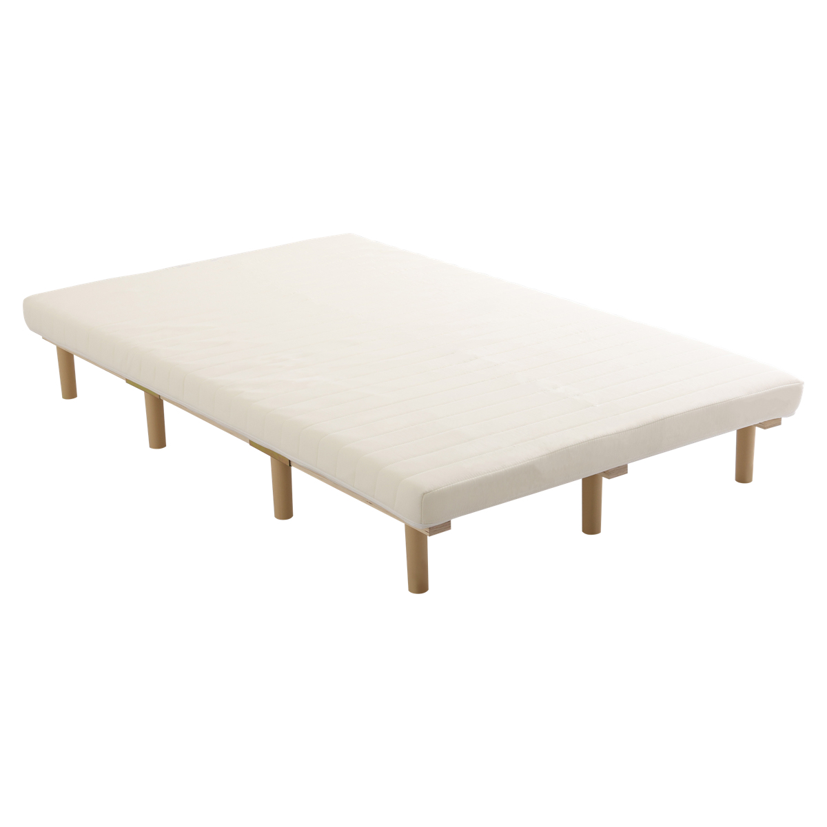 継ぎ目のない、一体型の脚付きマットレスです。良質なマットレスと通気性の良いすのこベッドを一体化した、シンプルに暮らしたい人にぴったりなミニマルデザインです。フレームがないシンプルな構造なので、場所を取らずに設置できます。