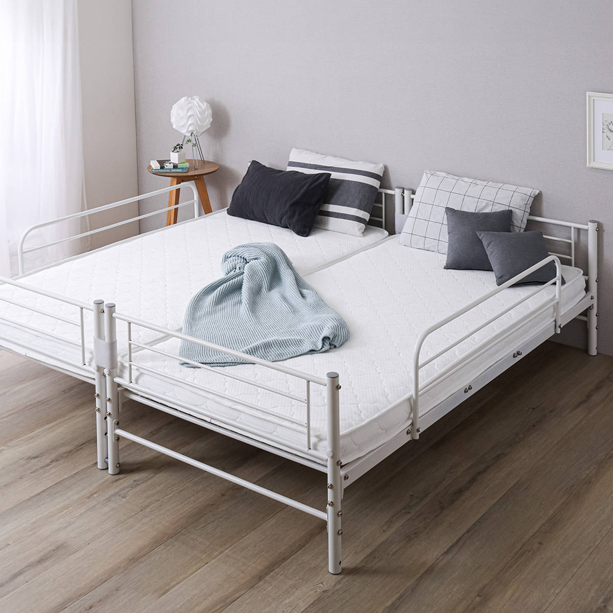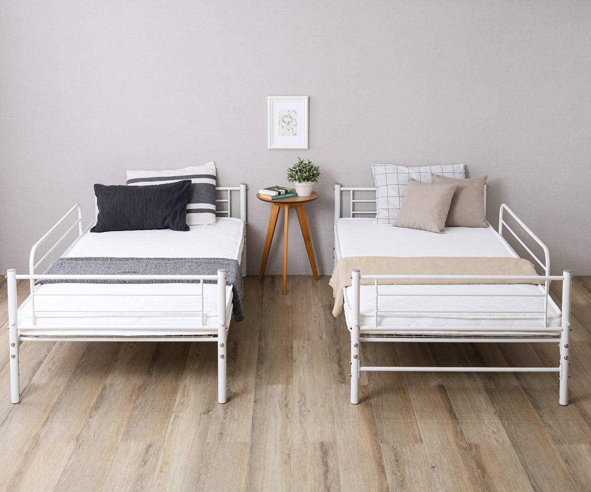 上下を分割してシングルベッドや、キングベッドとしても使える組み変え自由な2段ベッドです。丈夫なスチール製で、耐久性と利便性を持たせたシンプルで飽きのこないデザイン。ご家族の成長と共に、長くお使いいただけるサステナブルなベッドです。