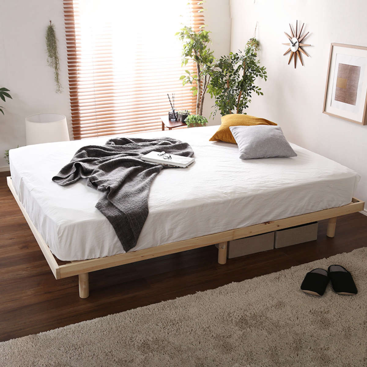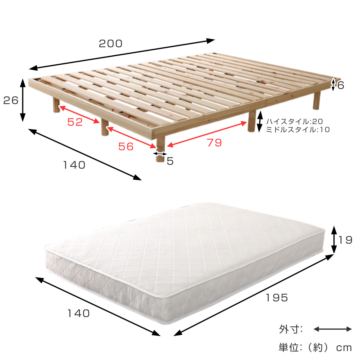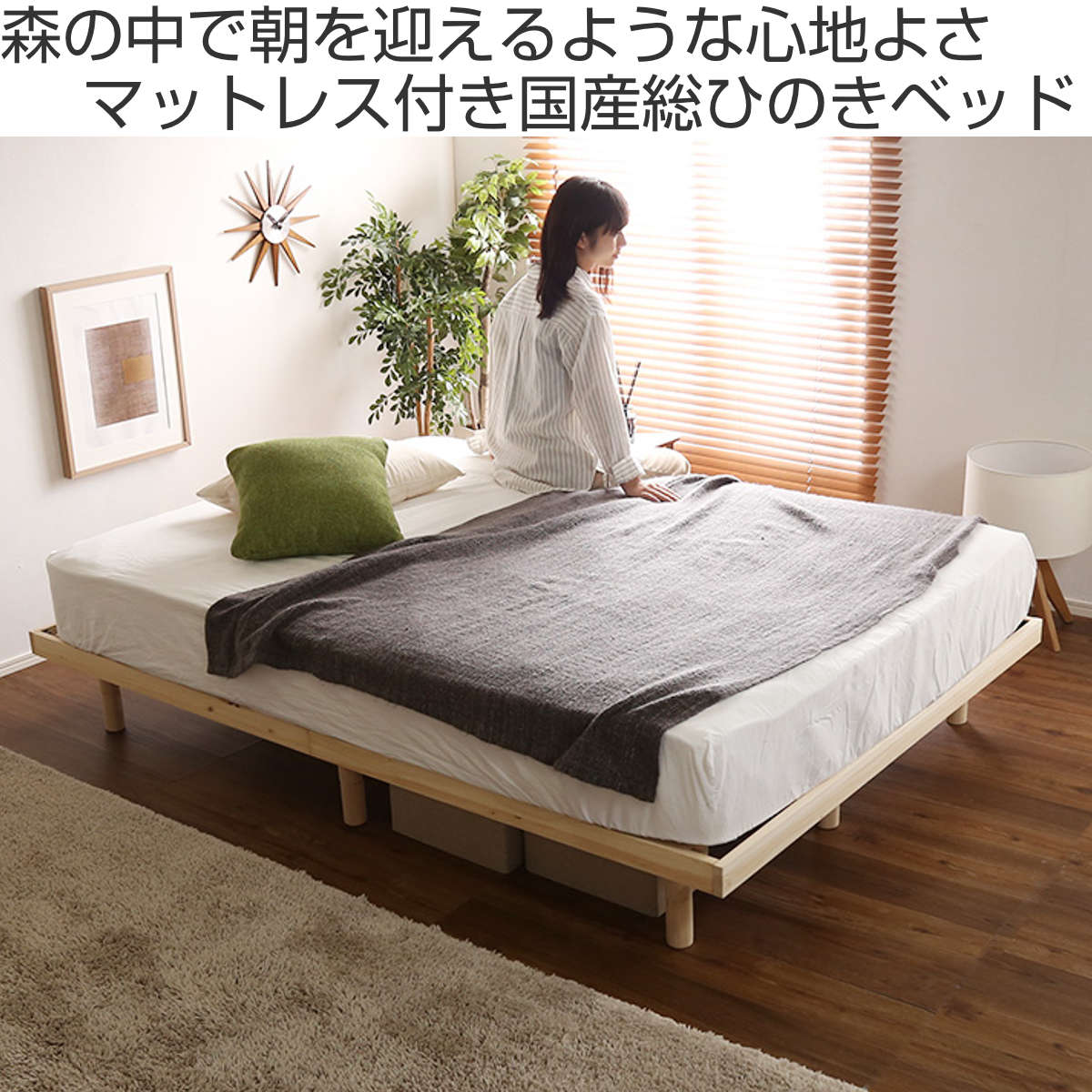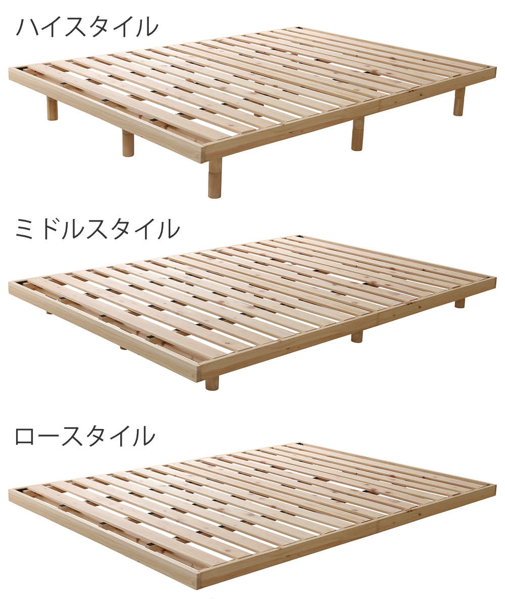 すのこベッド ダブル ポケットコイル マットレス付 国産檜 ピエルナ ( ベッド 3段階 高さ調節 天然木 木製 ひのき マットレスセット 低ホルムアルデヒド 耐荷重200kg ヒノキ )