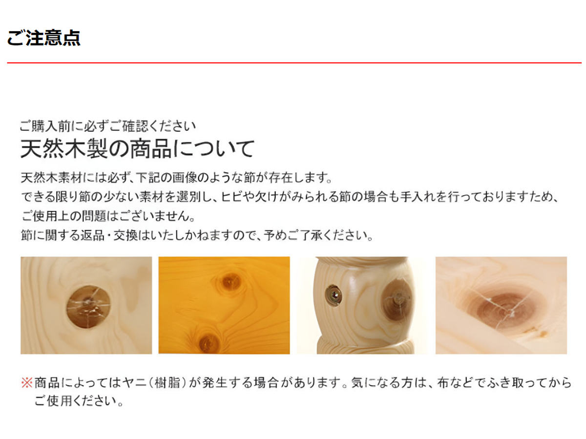 | 注意事項 | ※天然木を使用しているため、1点1点色合いや風合いが異なります |