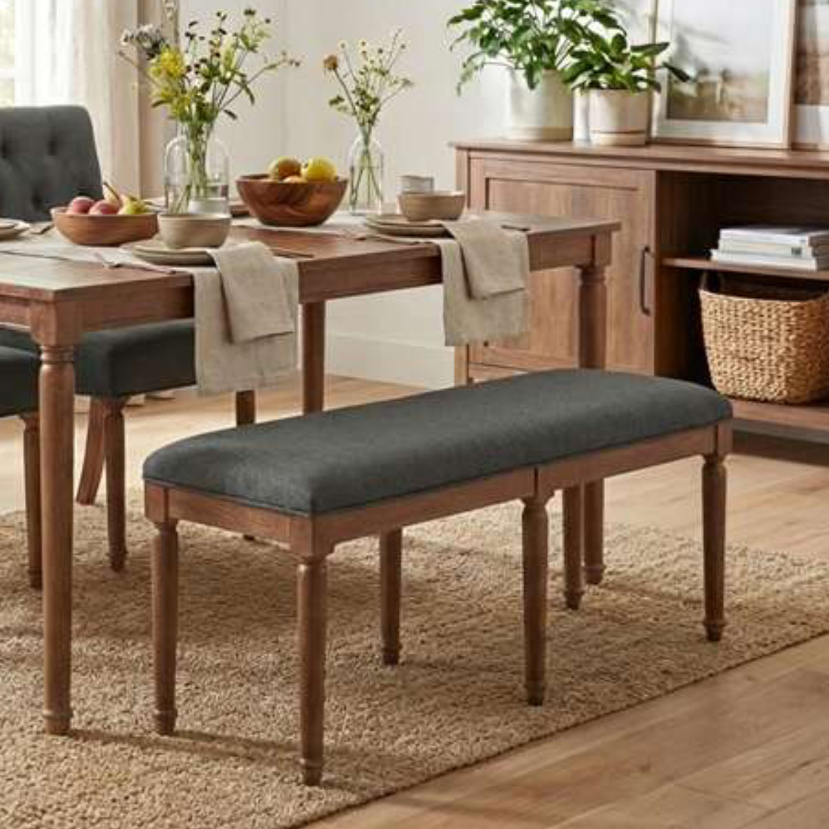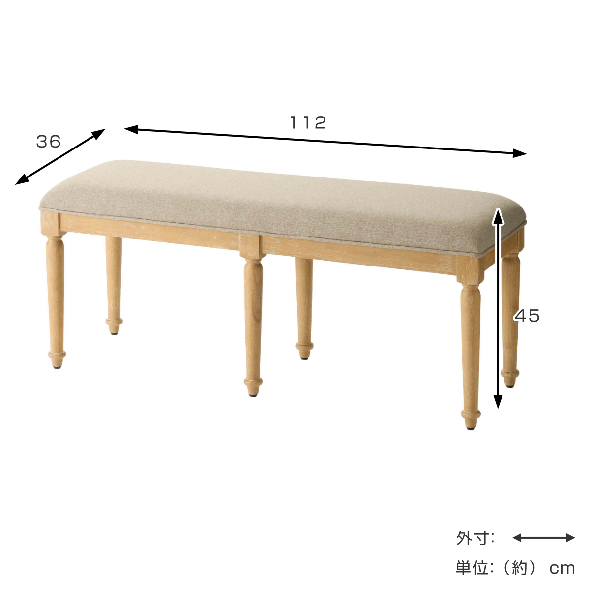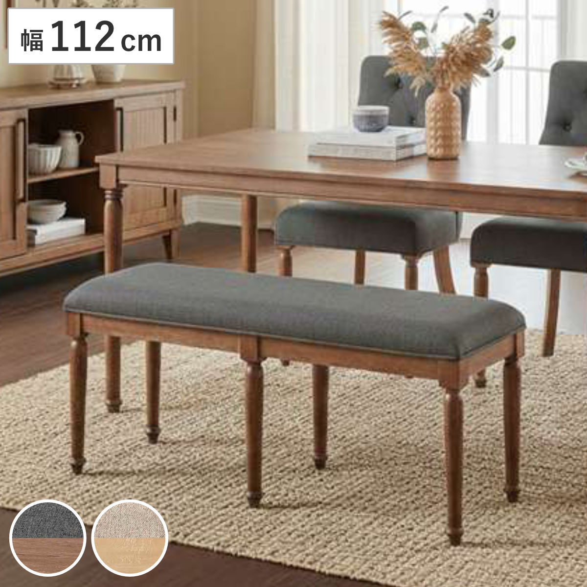 ダイニングベンチ 幅112cm クラシア ( ベンチ 腰掛け 長椅子 椅子 ダイニングチェア 木製 天然木 ラバーウッド 完成品 ワイド ファブリック チェアー チェア イス 玄関 リビング 背もたれなし ) 【ブラウン】