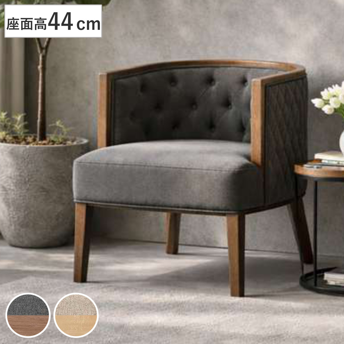 天然木の脚部とファブリックの組み合わせが、やさしくあたたかい印象に。ナチュラルからクラシックまで、幅広いインテリアに馴染みます。