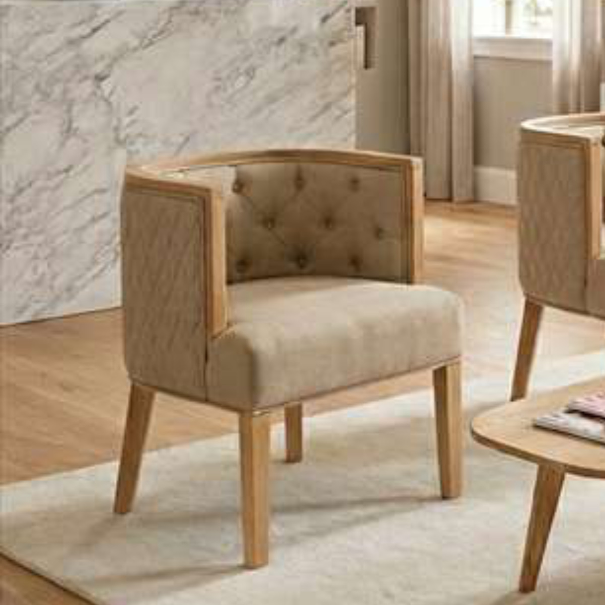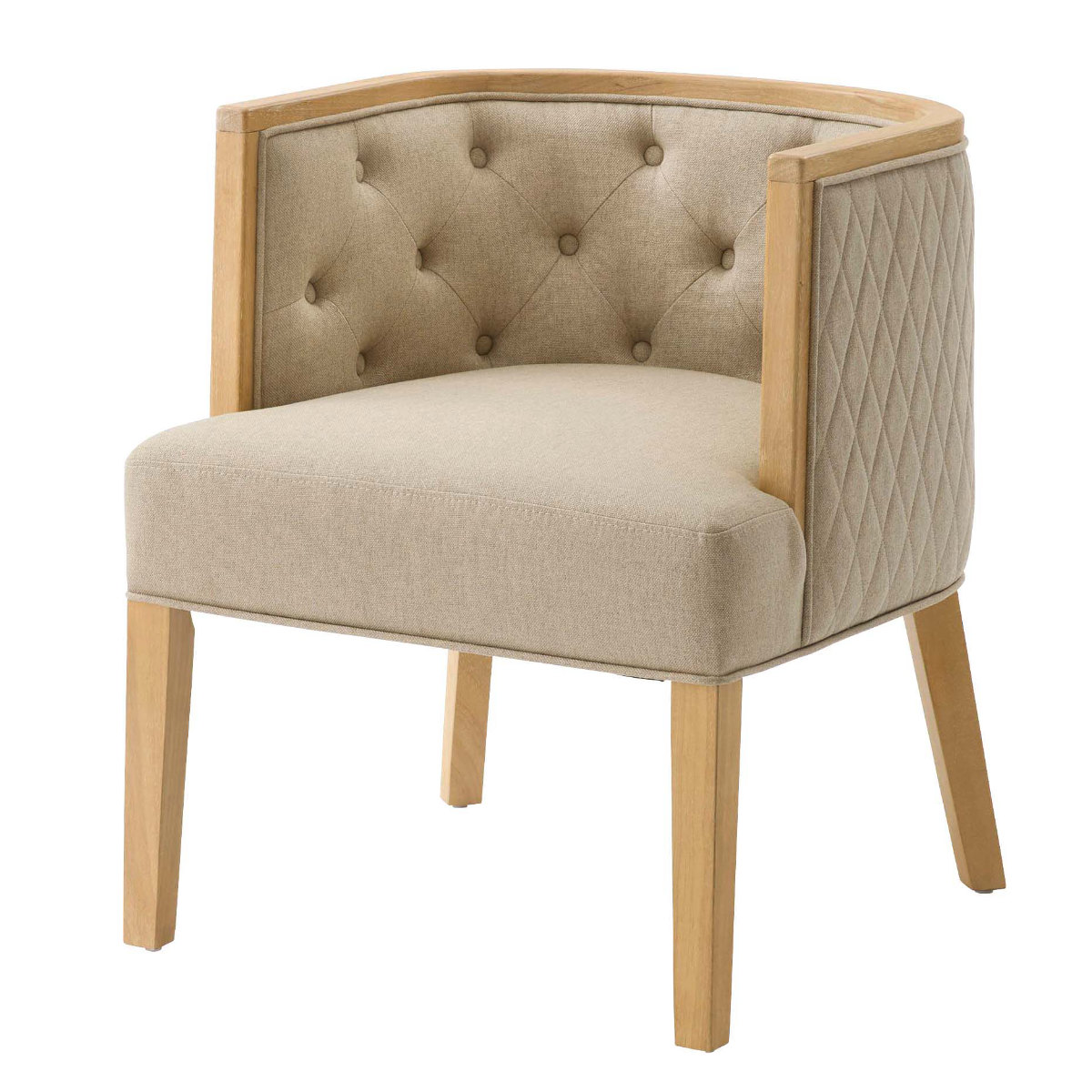 ラウンジチェア 座面高44cm クラシア パーソナルチェア ( チェア ダイニング イス 椅子 木製 天然木 肘掛け リビングチェア アームチェア 座面 広い ファブリック キルティング チェアー いす 玄関 リビング サロン ) 【ナチュラル】