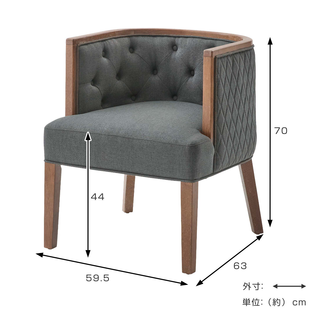 | サイズ | 約 幅59.5×奥行63×高さ70(cm) 座面高:約 44(cm) |