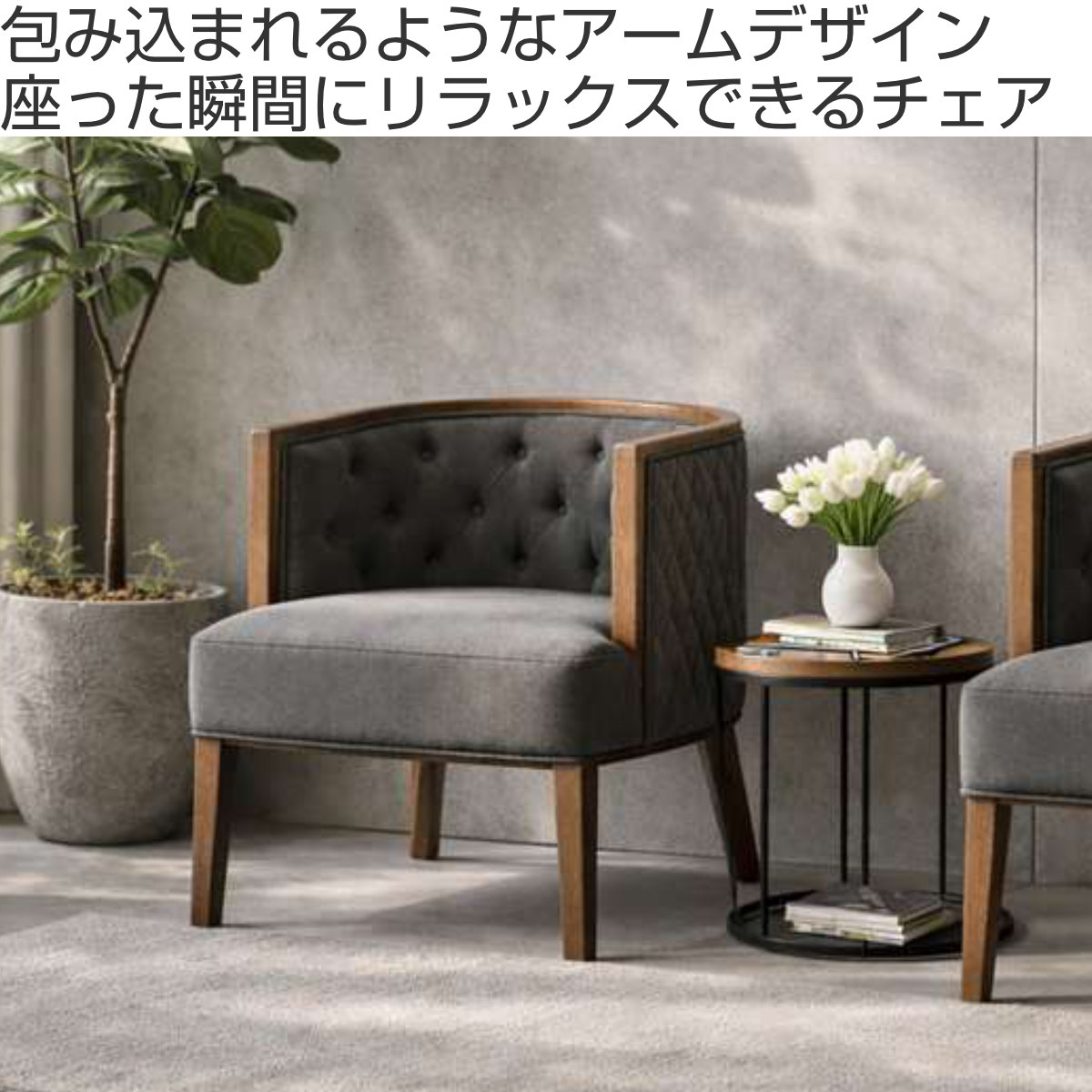 背もたれからアームまでつながるカーブ形状が、体をやさしくホールド。座った瞬間に安心感があり、リラックスした時間を過ごせます。