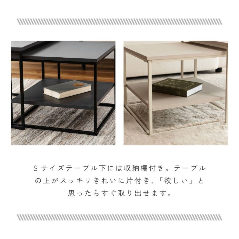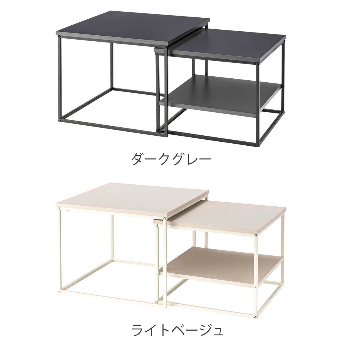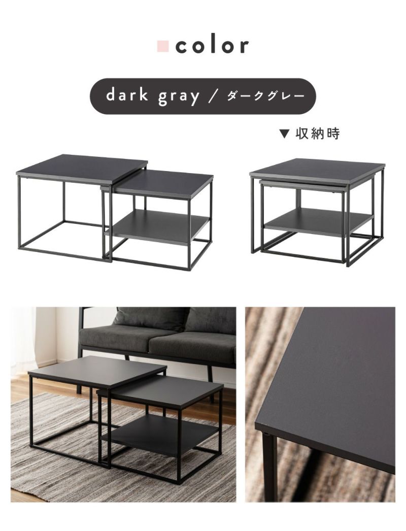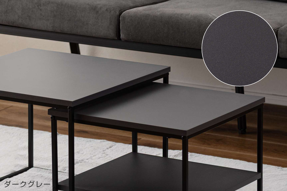 ネストテーブル 幅43cm 幅50cm 正方形 ローテーブル ( テーブル センターテーブル リビングテーブル 机 サイドテーブル 四角 大 小 2個セット 収納棚 スクエアネストテーブル ソファテーブル 入れ子式 省スペース スチール脚 ) 【ダークグレー】
