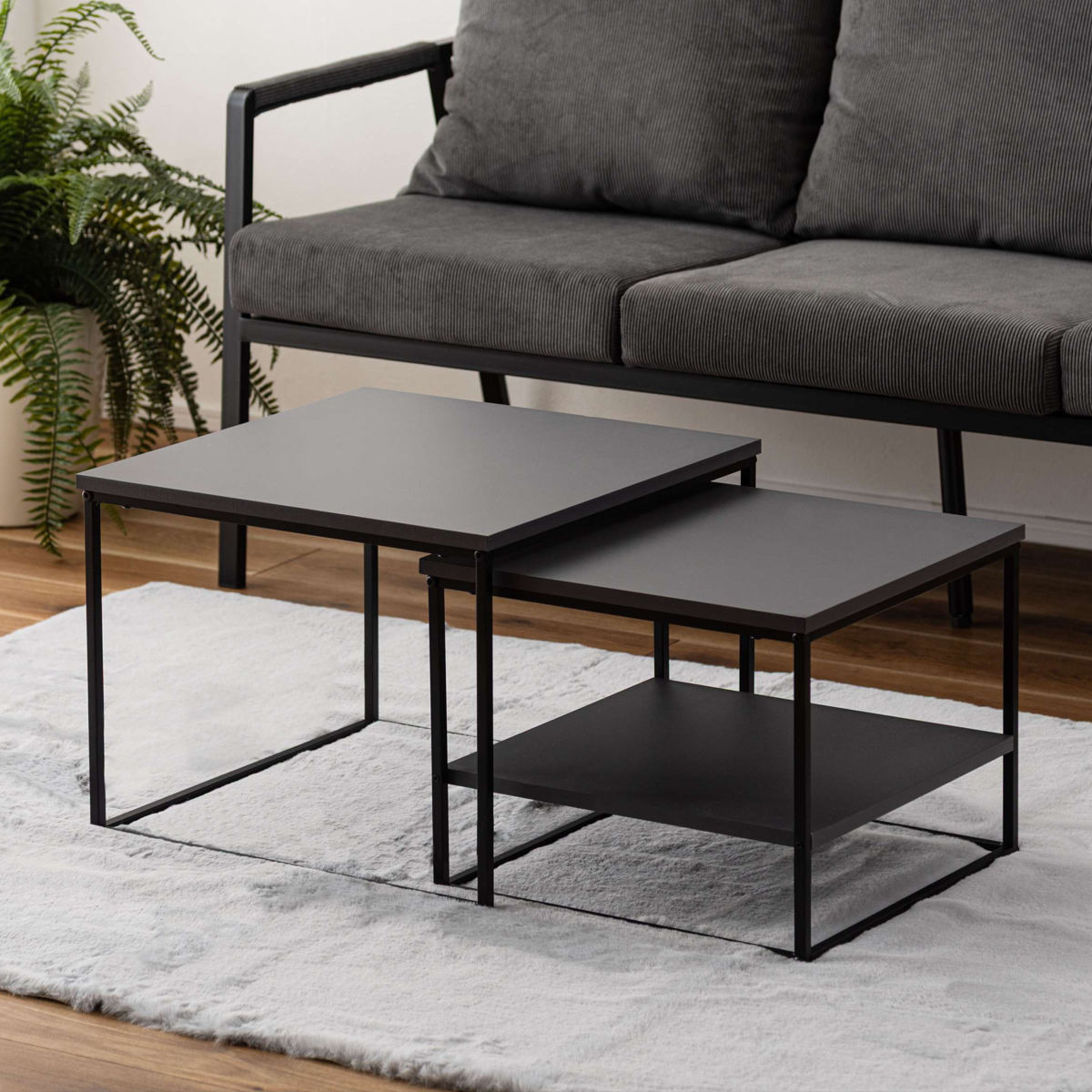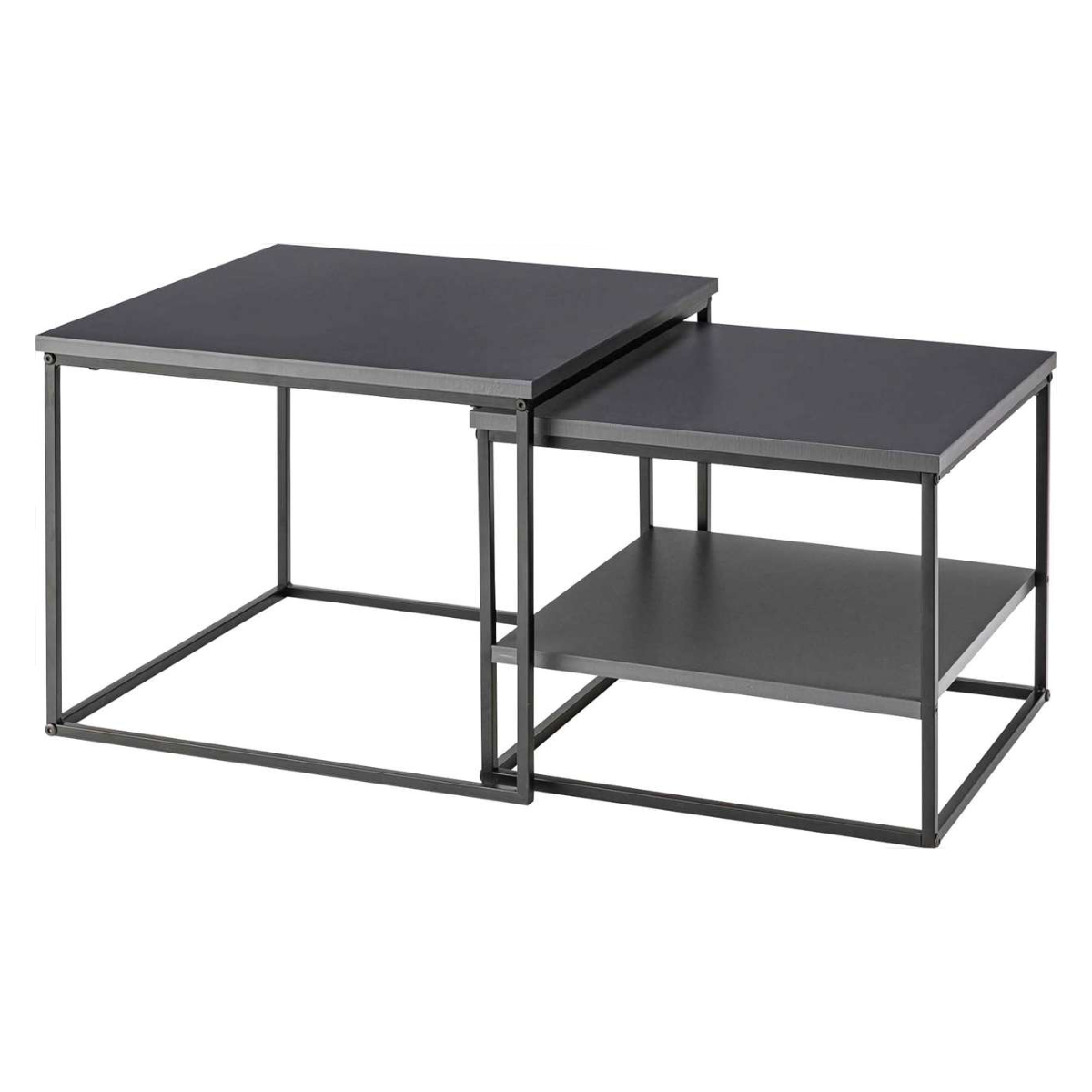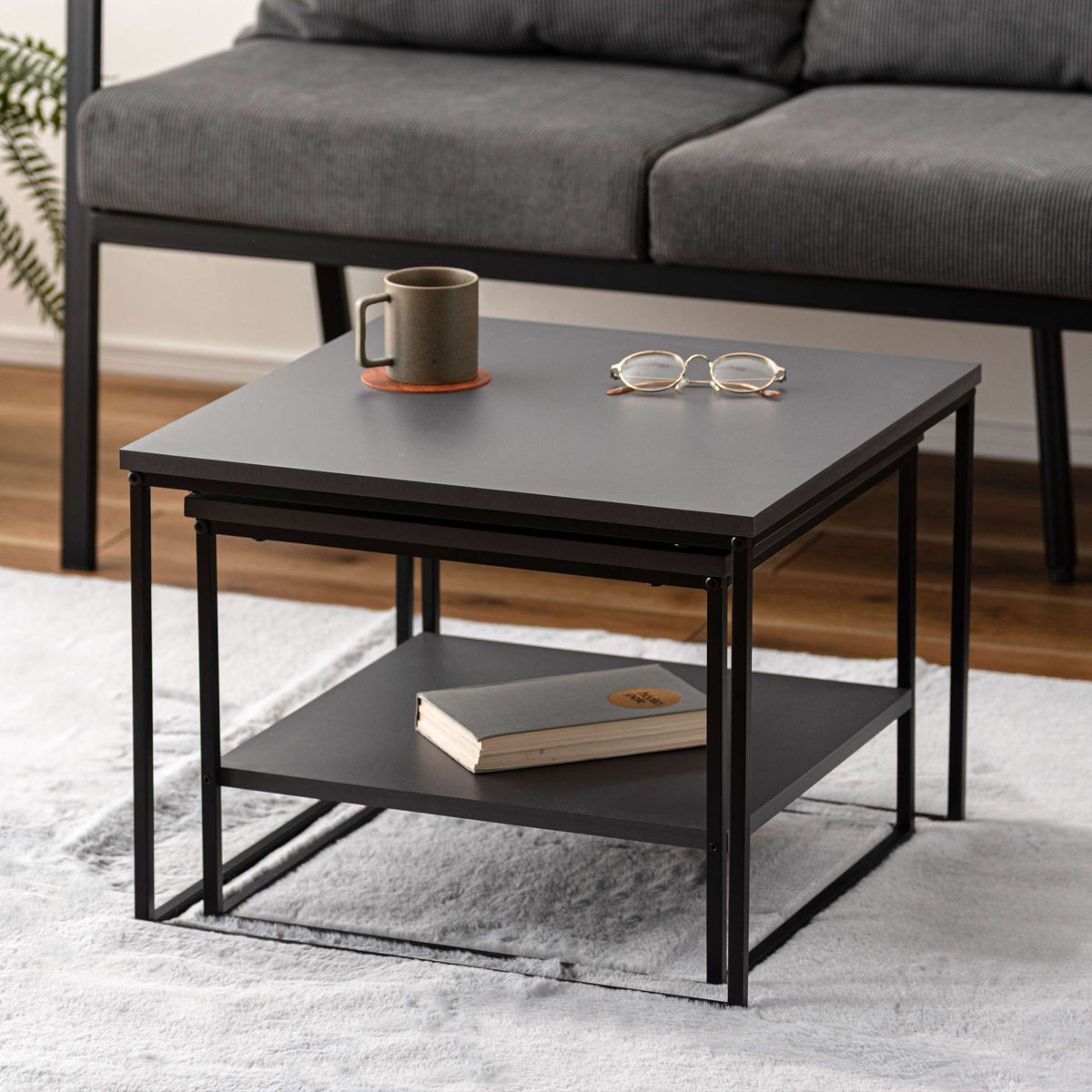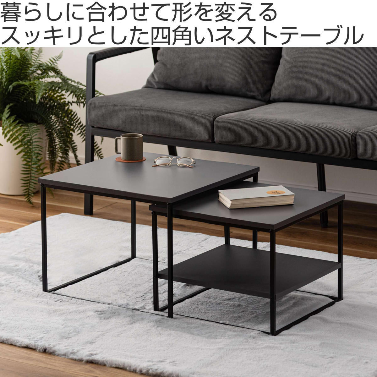 ネストテーブル 幅43cm 幅50cm 正方形 ローテーブル ( テーブル センターテーブル リビングテーブル 机 サイドテーブル 四角 大 小 2個セット 収納棚 スクエアネストテーブル ソファテーブル 入れ子式 省スペース スチール脚 ) 【ダークグレー】